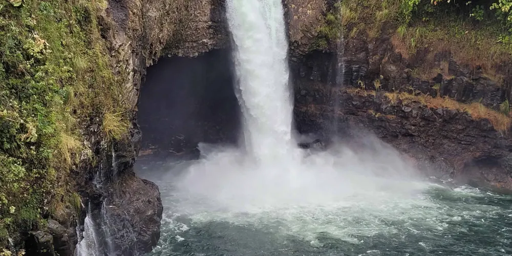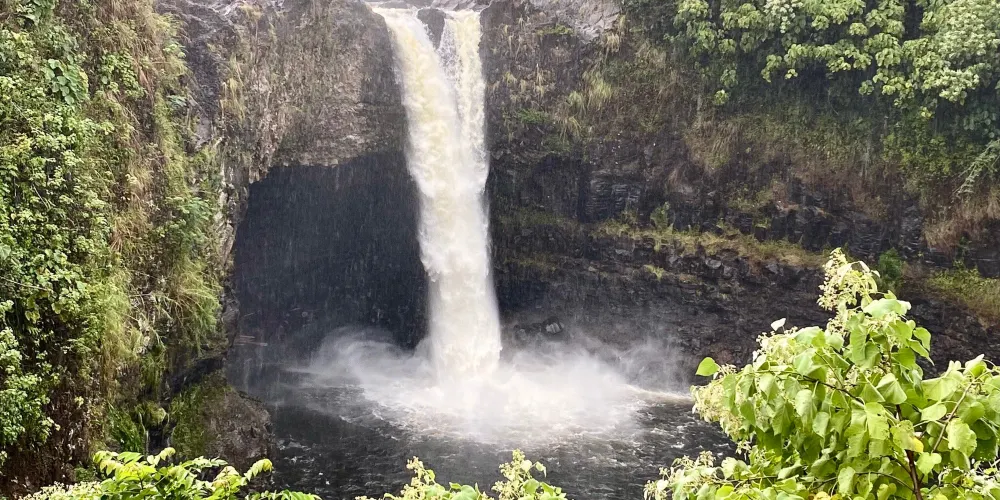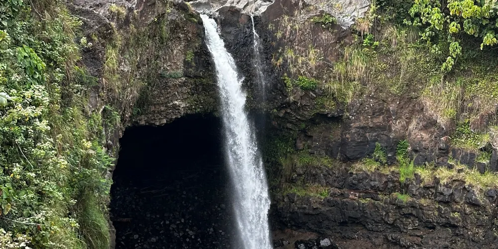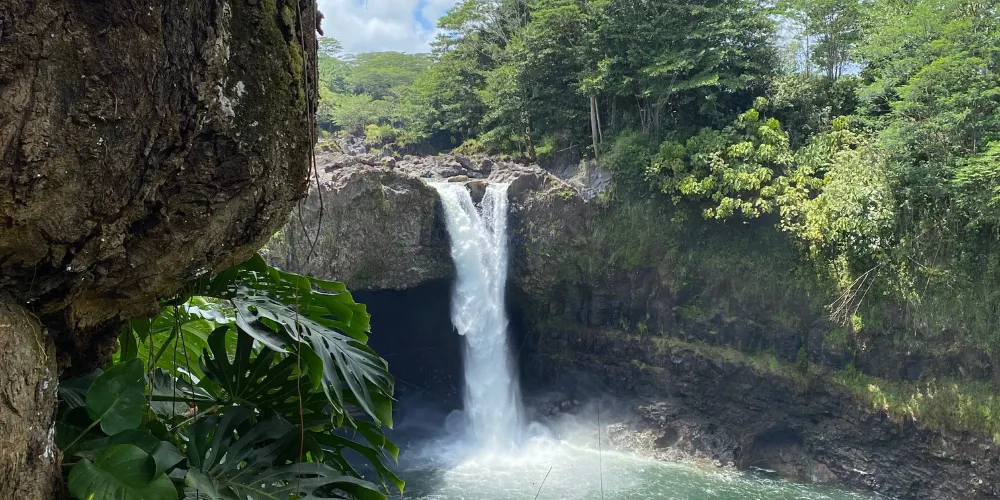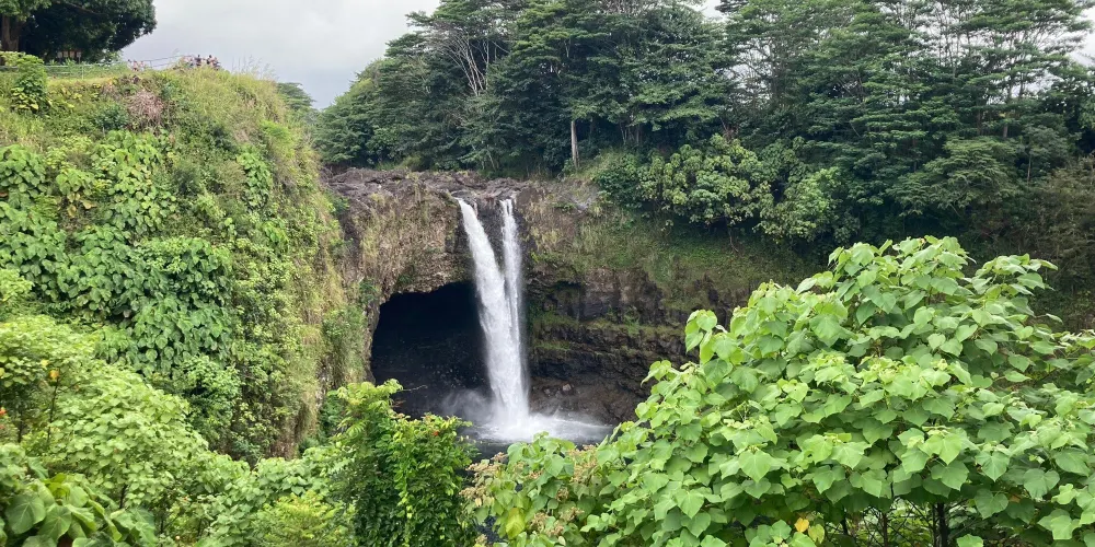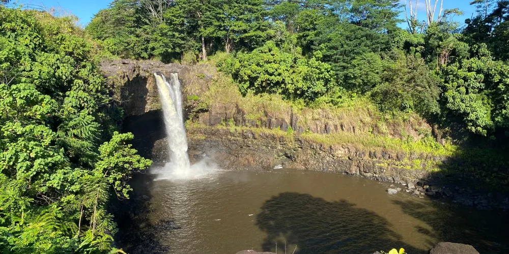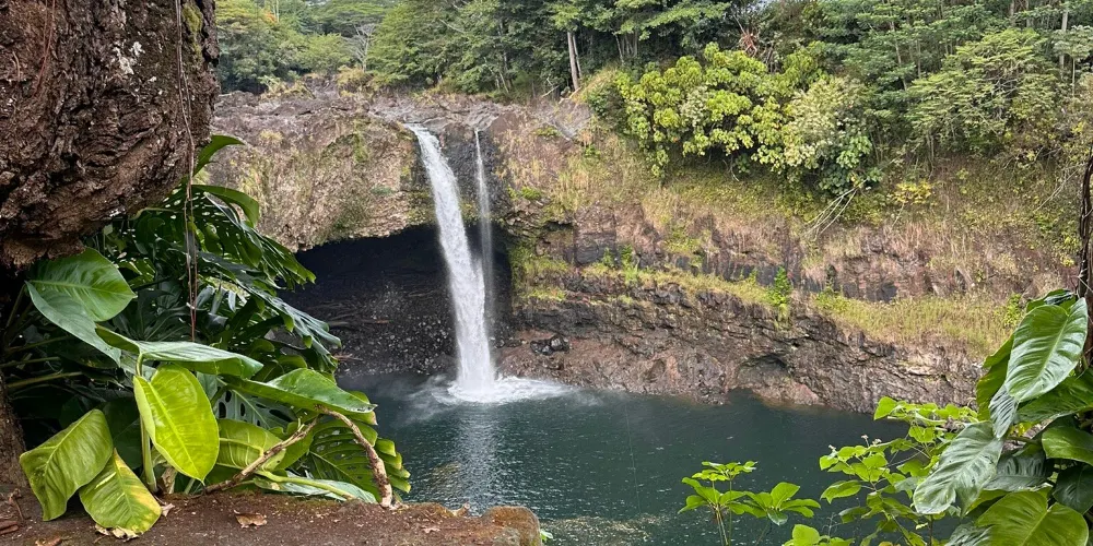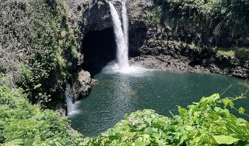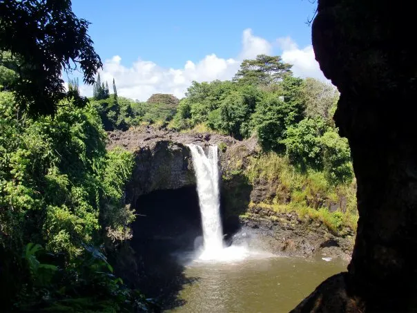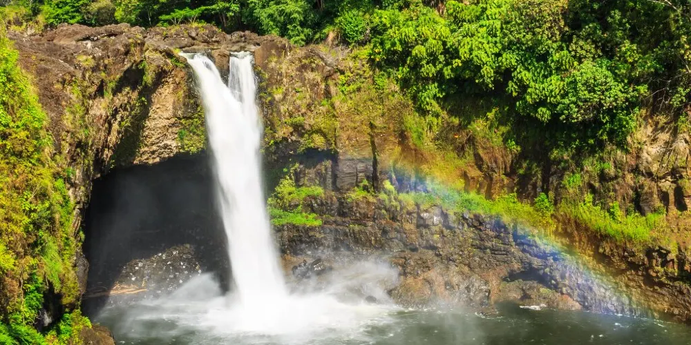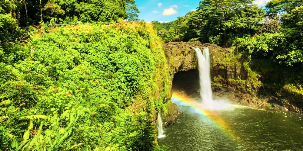 彩虹瀑布位於大島希洛市的西部,因瀑布的水霧經陽光折射後形成美麗的彩虹而出名。彩虹瀑佈在四周層層疊疊、青翠欲滴的熱帶植物的掩映下,顯得它非常的與眾不同。彩虹瀑布是夏威夷群島中為數不多的無枯水期瀑布之一。