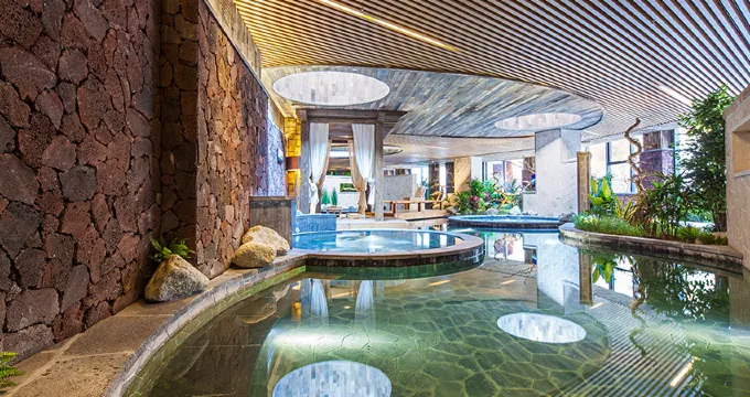 溫泉區是酒店的核心亮點,擁有多個室內外溫泉池,水質富含多種礦物質,對身體健康有益。遊客可以在溫泉中舒緩疲憊,享受溫暖的水流帶來的寧靜與舒適。溫泉區設計精美,神峰圍繞,峽谷相伴,山清水秀,風景如畫,讓人彷彿置身於大自然的懷抱。