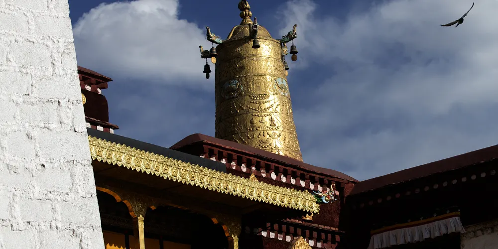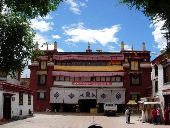 大昭寺,藏語為“覺康”,又名“祖拉康”,是藏傳佛教信徒朝拜的終點,在他們的心中,大昭寺之神聖,並不遜於布達拉宮。不論從地理位置上,還是在藏傳佛教信徒的心目中來説,大昭寺都是名符其實的藏傳佛教聖地和中心,在藏傳佛教史上擁有極其崇高而聖潔的地位。大昭寺始建於公元七世紀中葉,是藏王松贊幹布為了安放其王妃尼泊爾尺尊公主,從家鄉加德滿都帶來的釋迦牟尼8歲等身佛像而建,公元1409年,格魯派創始人宗喀巴大師在大昭寺宏揚佛法,舉行傳昭大法會,從而奠定了其在藏傳佛教史上的重要地位。公元八世紀,大唐文成公主入藏時從長安帶來的釋迦牟尼十二歲等身像供奉於大昭寺內,成為大昭寺的鎮寺之寶,是遊客及前往朝拜的人必不可錯過的看點之一。