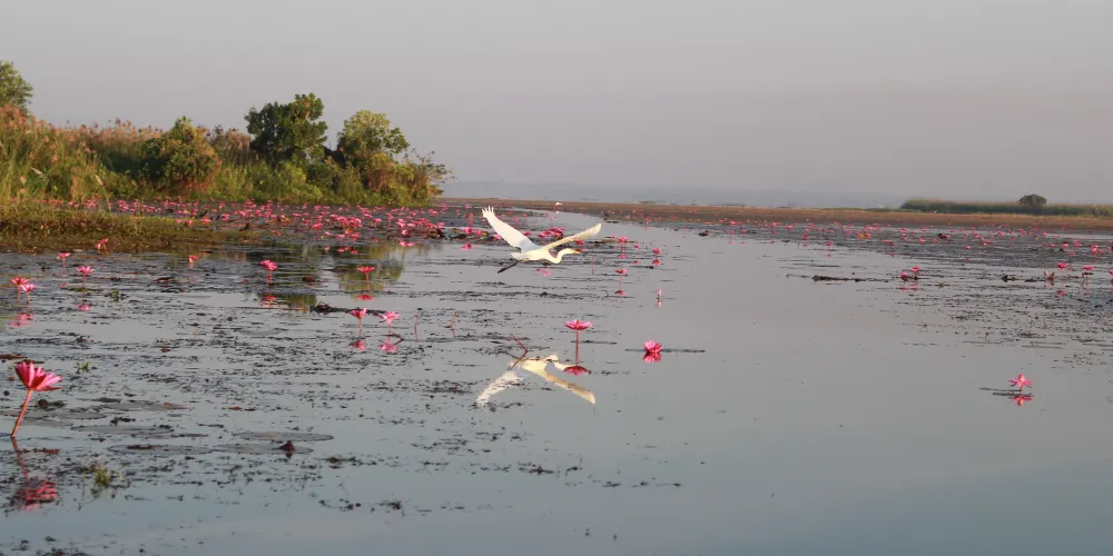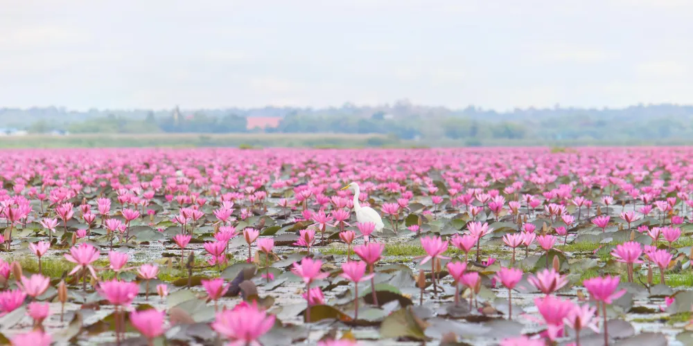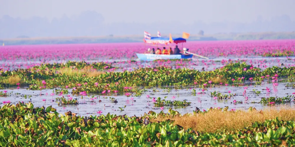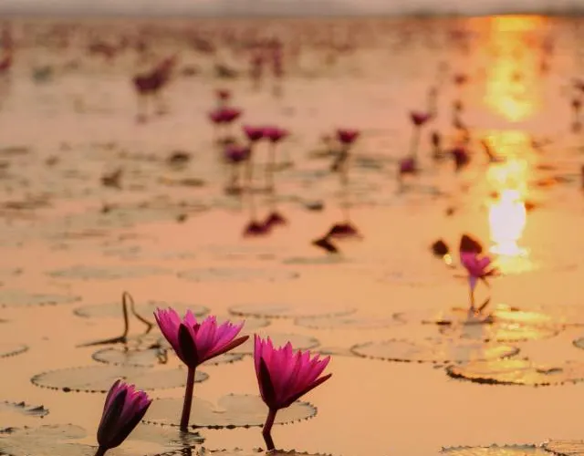 烏隆他尼紅蓮湖——儂韓湖。在2014年被CNN評為“世界十大奇湖之一”和“世界第二大奇觀”!蓮花在泰國的地位人盡皆知,而這裏正是泰國的“紅蓮盛開之地”!每年11月到第二年2月,湖中數以萬計的紅色蓮花競相開放,整個湖面呈現出一望無際的紅色,極其浪漫,令人驚歎!