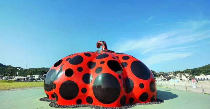 作者是這麼評價自己的作品的追尋太陽的紅色光芒一直來到宇宙的邊際,最後來到了直島的海面,變身成了紅色南瓜。
