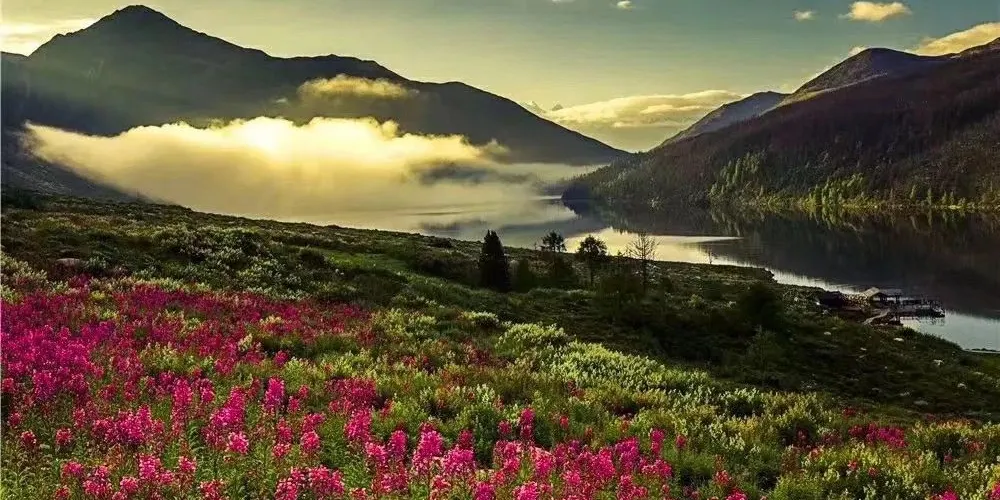 紅海草原因高山湖泊—紅海而得名,當地藏民將紅海稱之為「小海子」,以區別於被稱之「大海子」的木格措聖湖。這裡芳草如茵,野花遍地,讓遊客親身體驗那幽香沁人的格桑花就在雪山下的絕世美景。