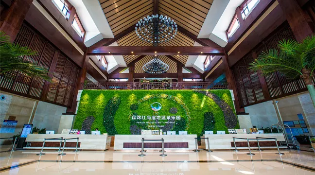 紅海濕地溫泉樂園室外溫泉區分為碧海瓊島區、原湯泉區、五行溶洞區、錦鯉嬉戲區等共有各具特色的溫泉湯池50餘池,可同時接待數千名遊客。室內溫泉水上樂園包含造浪池、大型水寨、彩虹滑梯等多個項目與溫泉巧妙的融合在一起。