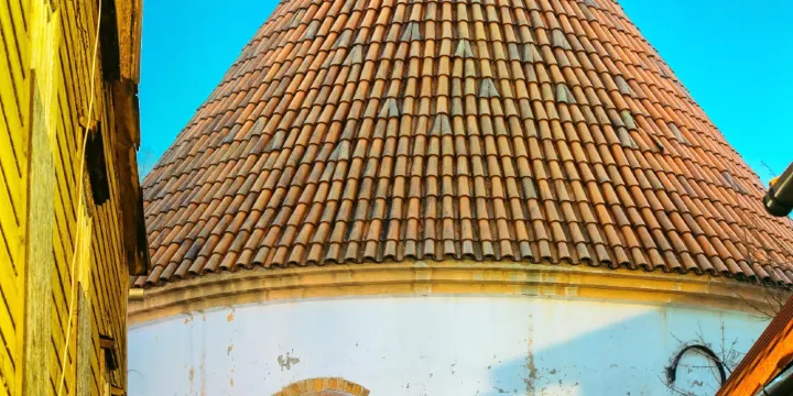 紅塔是派爾怒地區從中世紀以來唯一倖存的防禦建築。它是這個古老城市建築風格的象徵。據歷史學家考證,14世紀派爾怒城區與外部交界處建了一圈堅固的城牆,城牆周圍修了很多塔,白塔就豎立在東北中心,而紅塔豎立在東南中心。1893年做了十分必要的改造以後,紅塔保留了現在的模樣。