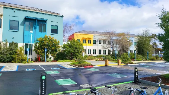 Facebook總部位於矽谷的帕羅奧多市,佔地面積100萬平方英尺,這裡可容納2000名員工在內辦公,相比於原先的舊址可謂是搖身一變。公司內配套設施先進,為員工們提供了優良的辦公環境。不過由於種種原因遊客們不能進入參觀。不過大門口處有一塊大的logo,是Facebook極具代表的象徵著贊的大拇指,許多人在此合影留念。