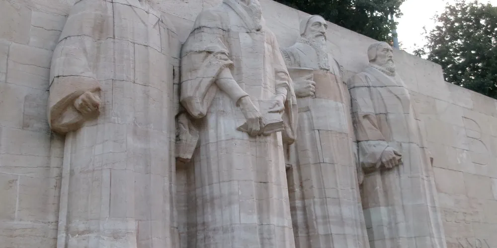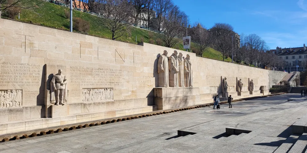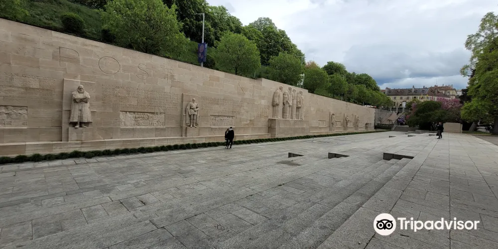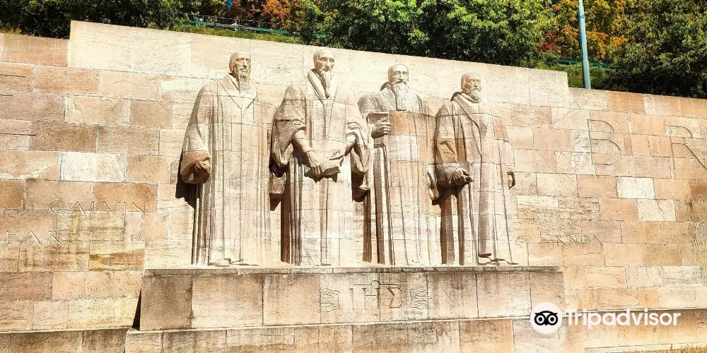 宗教改革紀念碑位於日內瓦大學後面的公園中,高10米、長100米的花崗石長壁牆,為紀念宗教改革先驅者加爾文誕辰400周年。