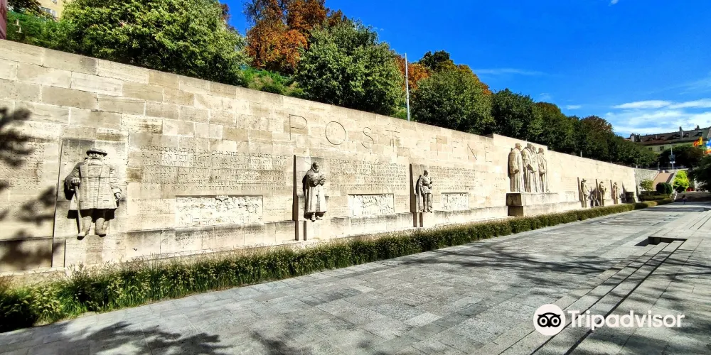 紀念碑牆中間是四個高大的人物雕像,從左到右分別是法海爾、加爾文、拜茲和諾克斯。他們和周圍雕像的人物都是16世紀宗教改革的著名人物。整體雕像宏偉壯觀,很適合拍照。