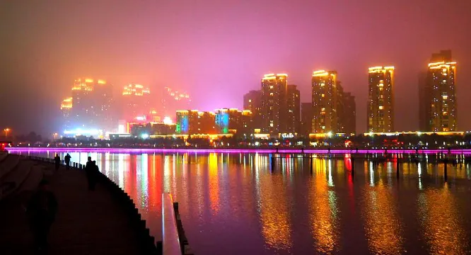 人工湖公園是蒼南縣城地標性文化休閑廣場。園內有人工湖、音樂噴泉、也可乘船在湖上遊玩。