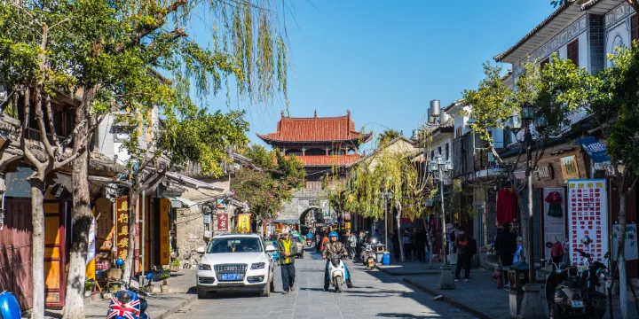 遊玩大理古城,人民路是每個遊客都不會錯過的地點。漫步在街邊,兩旁店家主要都是古董店、手工店、清吧、書店等,趣味十足。街頭常會有獨立音樂人在演唱自己創作的歌曲,也有很多擺攤販售賣自己作品的手工藝者,他們多是旅行到這裡,決定停留一陣子的年輕人。