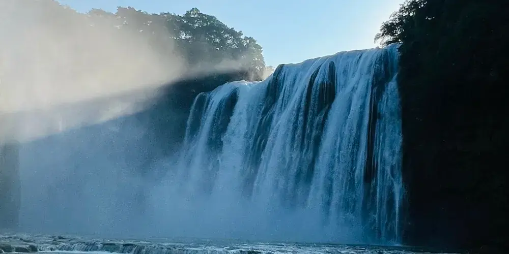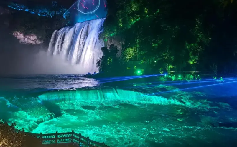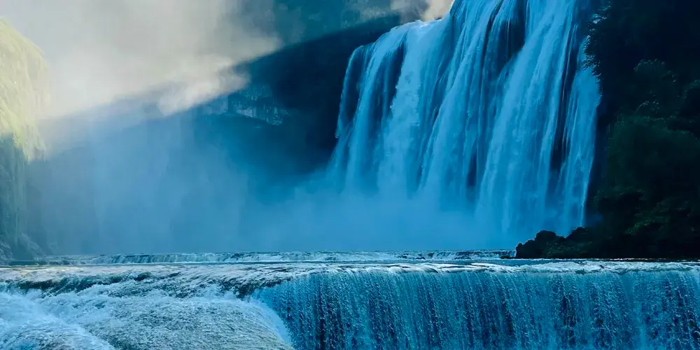 瀑布水沿著瀑面傾瀉而下,聲勢浩大,場面蔚為壯觀,令人驚嘆。運氣好的話還可以看到美麗的彩虹。這裡也是86版電視劇《西遊記》片尾曲的取景地。
