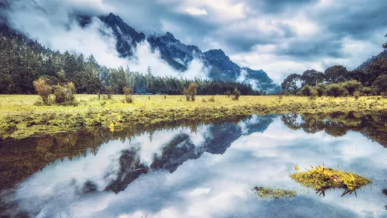 則評價伍須海主要景點有:三道橋、出龍潭、斬龍台、佛爺峯、伍須村藏寨、鎮海石、十二姐妹峯、蓮花峯、伍須海天然公園、日魯庫大草原。“伍須海”在藏語裏是“發光的海子”,它像一塊碧玉鑲嵌在森林峻嶺中,湖水隨天色變化出或深或潛的藍和綠,當地人則把它比作“仙女梳粧的明鏡”,原始森林和寬闊的草甸環繞湖泊,湖水碧綠透明,環境幽靜。古樹盤根錯節,藤枝攀延纏繞,杜鵑樹伸向湖面,使伍須海顯得原始、古樸。夏秋時節,百花盛開,爭奇鬥艷,置身其間,彷彿進入仙境。湖四周被高山環抱,南面是連綿起伏的12座仙女峯,形如仙女婷婷玉立一側,與伍須海遙相輝映。每當晨曦為露,薄霧輕泛,湖面一片蒸騰,稱為“仙女早潔”;夕陽西下,十二仙女峯倒映湖中,如入仙境,稱為“仙女回宮”。山上春、秋、冬三季均積雪,煞是壯觀。北面的扎西普讓大雪山則終年積雪,每當日出時分,金光沐頂,絢爛壯麗。南北湖畔是繁花綠野,北面的草原還彎彎曲曲流淌着從雪山消融的水源,像丹青妙手輕輕點染出入神的一筆。東西湖畔至半山,垂直分佈着高山苔蘚、杜鵑叢、冷杉林、落葉松等,許多珍稀動物出沒其間。溝壑還有飛瀑落下,在陽光下劃出一道彩虹,讓遊人驚喜不絕。小貼士:五須海旅遊時節是在農曆六月左右,這時的伍須海擁有雪山、湖泊、林海、草甸與溪流於一體,被喻為“仙女梳粧的明鏡”,是不少遊客嚮往的佳境。而且,農曆六月初四,是九龍縣一年一度的民間傳統節日——遊海節。