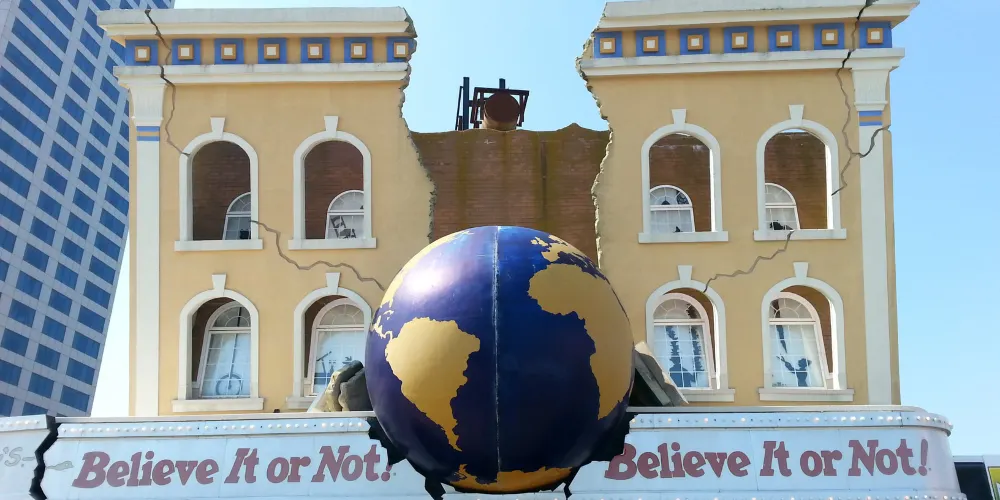這家信不信由你博物館還蠻好找的,外觀是一顆地球被砸了的房子。展品大部分是一些比較奇特的展品,十分有趣。