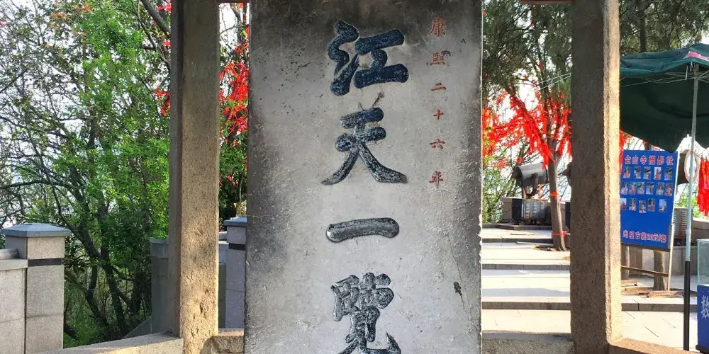 江天一覽位於金山景區內,這裡有一處涼亭,亭下立有一碑刻“江天一覽”四字,站在此處,可俯瞰景區美景。