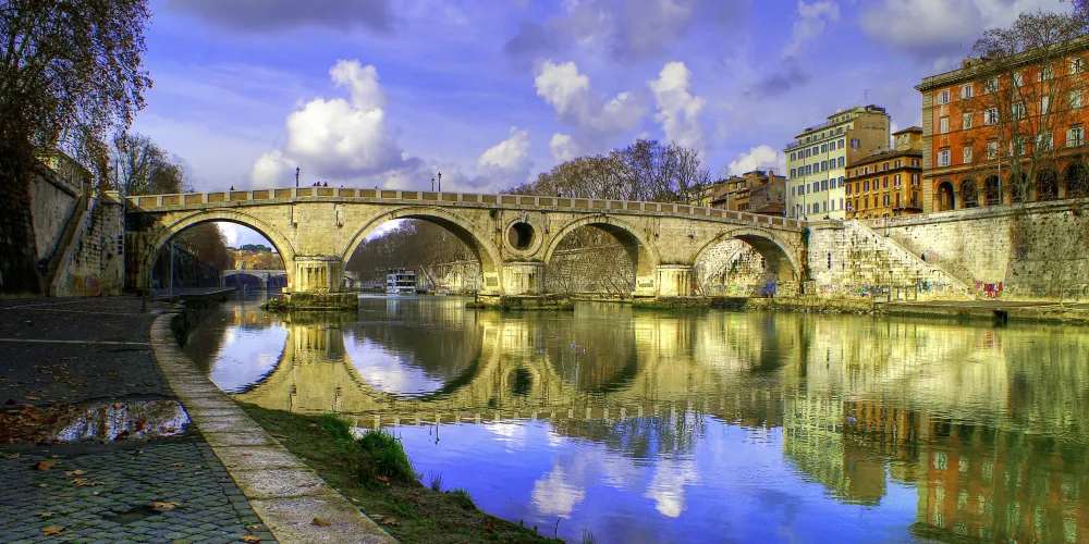 台伯河是意大利第三大河,長406公裡,起源於亞平寧山脈,流經羅馬後,從奧斯蒂亞遺注入地中海,也是羅馬的母親河。如今,你可以漫步在台伯河畔,欣賞羅馬的美景,包括聖天使橋、聖天使堡等。