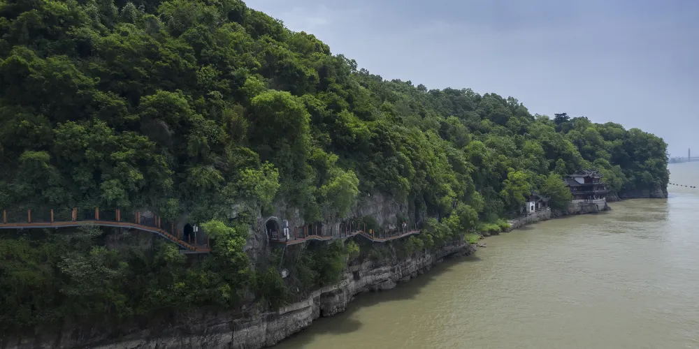 翠螺山原名牛渚山、採石山。稱作翠螺山,乃明清以後的事,山體俊秀,絕壁臨江,江中遙望,“似翠螺浮於水面”,由是被稱之為翠螺山。翠螺山的形成可追溯到2億2千5百萬年前的中生代三迭紀。那時長江下游廣大地區還是一片汪洋大海。隨着地球的演變,地殼由於內引力和外引力的左右女冠發生劇烈變化,大部地方海底隆起,海水漸退,露出大片陸地。揚子準地台被周圍板塊擠壓,形成局部。翠螺山以秀麗稱勝,而不乏奇險。山之西麓有“西大窪”,這裏巖石裸露,崖陡谷深,草木葱蘢。春天,梨花勝雪;秋日,紅葉似火。一石一草,皆令人賞心悦目。“蝸牛尾”有臨江巨壁,如刀斧削成,壁麪紋理起伏,似一幅天然山水圖畫;崖端巨石數塊伸出崖壁,如猛獸昴首長嘯。江水奔流,浪拍雲崖,氣勢壯觀,堪可稱險。遊人倚翠螺、瞰長江,聽林濤與江浪共鳴,看沙鷗與白帆互逐,猶如置身仙境。