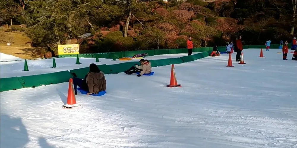 六甲山雪上樂園位於日本神户,是一座知名的人工造滑雪場,地理位置優越,交通非常便利。樂園內分別設有玩雪與滑雪的區域,滑道短、坡度緩,非常適合初學者。在專門的玩雪區域裏,還有多種玩樂項目,大人小孩都可以放心玩耍。