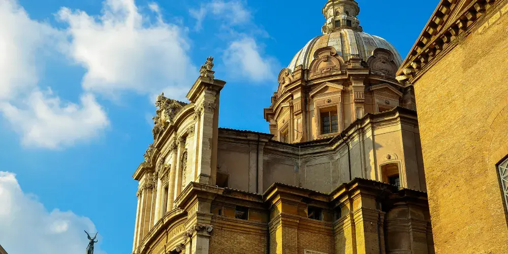 參觀完古羅馬廣場東側建築,可沿著神聖之路折返,欣賞廣場西側的風光。在西側能夠欣賞朱利亞會堂(朱里亞巴西利卡)留下的地基部分——雙子神廟(Tempio di Castor e Pollux)的遺跡。在朱利亞會堂的右側有一個缺口,它通往古羅馬的大下水道,道路的盡頭是用籬笆圍起來的古聖母堂(Santa Maria Antigua),裡面有非常精美的壁畫,可追溯到七、八世紀。