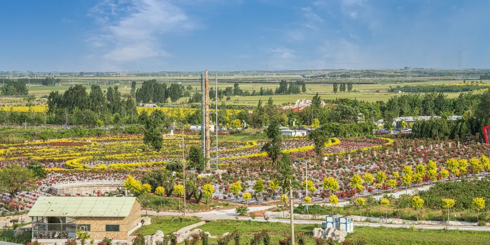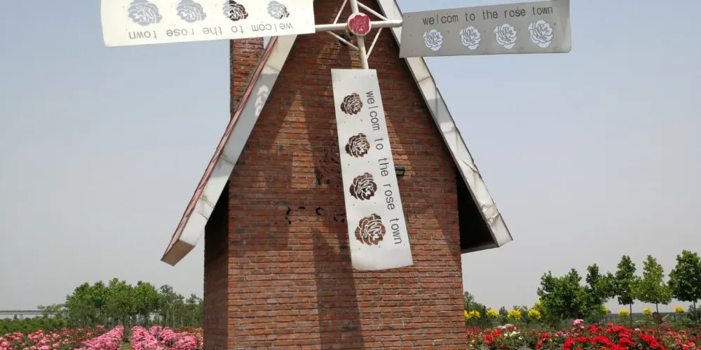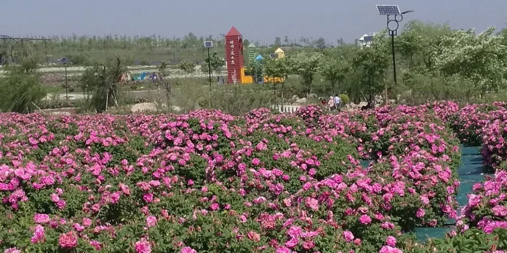 玫瑰小鎮生態旅遊觀光園始建於2012年5月1日,目前園區已引進世界各地300餘種玫瑰,主要分食用和觀賞兩大部分。玫瑰小鎮主要以旅遊觀光和產品深加工為主,一年四季的花海世界吸引了大批國內外遊客。除了種植玫瑰花外,園區還建成了地下“文化長廊”,通過壁畫和雕刻來展示玫瑰文化。
