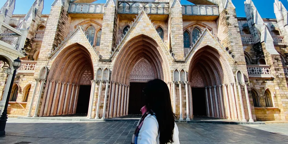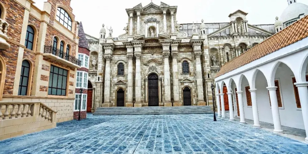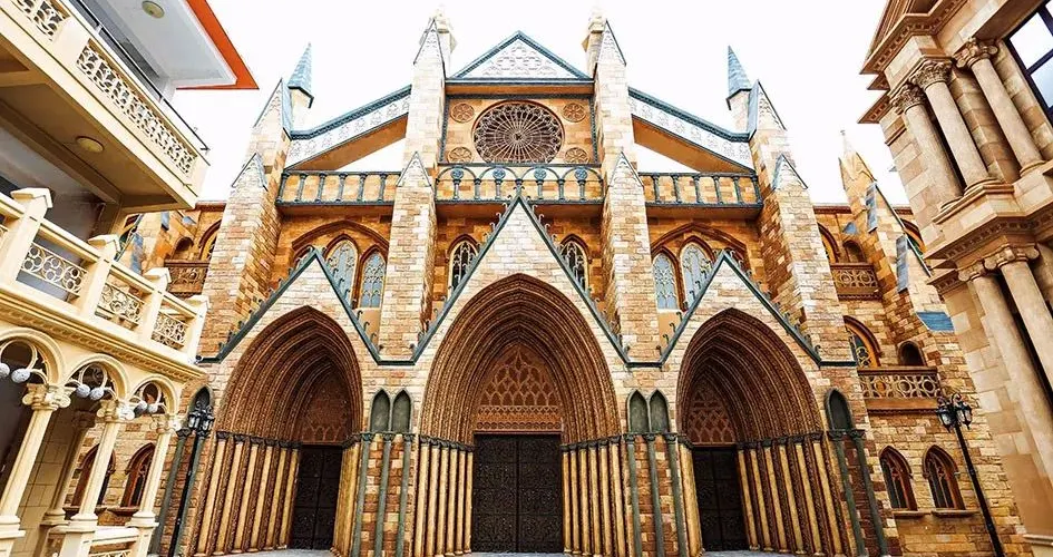 玫瑰小鎮有著典型的歐洲風格,景區內以“穿衣戴帽”的形式,打造了經典的歐式、中式、韓式風情街和世界七大教堂群、迪斯尼夢幻城堡、田園風光等六大主題。這裡的愛情禮堂、約會愛與情的後花園、充滿浪漫情調的園林花海,是情侶們嚮往的夢幻世界。