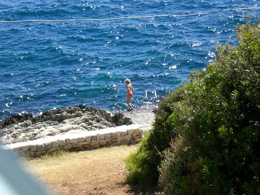 羅維尼精華的部分是坐落在半島上老城區。老城曾有七座門,如今還保留了三座,保存較完好的一座巴洛克拱門上有着威尼斯的標記:踩着聖經、長着翅膀的獅子。老城裡縱橫交錯的老巷子是一大特色,巷子兩邊都是現在仍有人住的老樓房,形態各異,安靜、神祕卻仍顯着有人氣。這一點有點像威尼斯幽深的巷子,所不同的是這一切全部建在山上,加之年代久遠,磨的流光錚亮的大理石鋪的坡道,感覺就遠勝威尼斯的巷子了。看着老房子、看着流光的遍地大理石,抬頭在樓隙中見到藍天,猶如井下見到天一般,偶爾一縷陽光在樓隙間射進來,整個巷子就燦爛了。