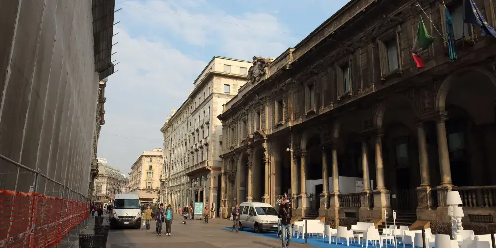 米蘭大教堂廣場位於米蘭市中心,周邊有很多重要的建築,其中米蘭的地標米蘭大教堂就坐落於此。廣場隨著大教堂的修建逐步發展起來,並以大教堂命名。廣場中央聳立著意大利王國第一任國王維多利奧·埃瑪努埃爾二世的騎馬銅像。廣場周邊還有埃馬努埃萊二世長廊、新古典主義建築風格的王宮、大教堂博物館等一系列的重要建築,散發出濃郁中世紀風情。廣場上可以看到成群悠閒信步的鴿子,有時到了傍晚還能看到隨興演出的街頭表演。廣場附近匯聚了很多商場、購物中心、精品專賣店和高級餐館,是米蘭知名的休閒購物區域。