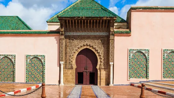 穆萊伊斯梅爾王陵位於摩洛哥的梅克內斯市,是一座歷史悠久的陵墓,紀念蘇丹穆萊伊斯梅爾。陵墓建築融合了摩爾式和伊斯蘭建築風格,以其精美的裝飾和莊嚴的氛圍吸引遊客。陵墓的入口處有精緻的馬賽克和雕刻,展現了摩洛哥傳統工藝的高超技藝。