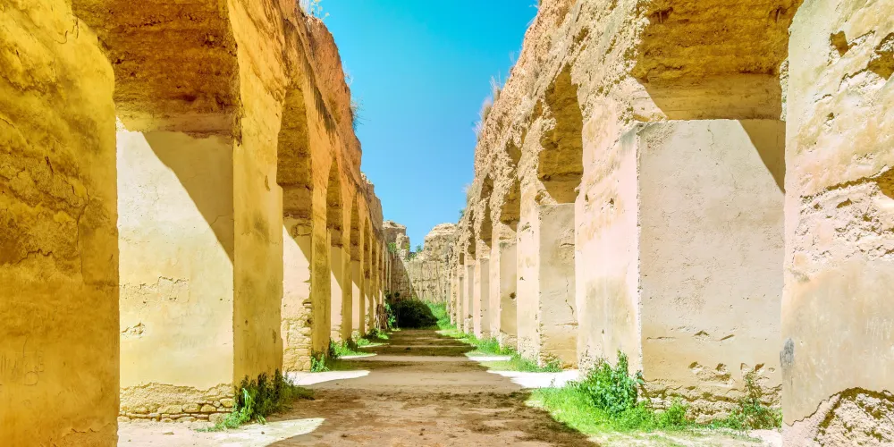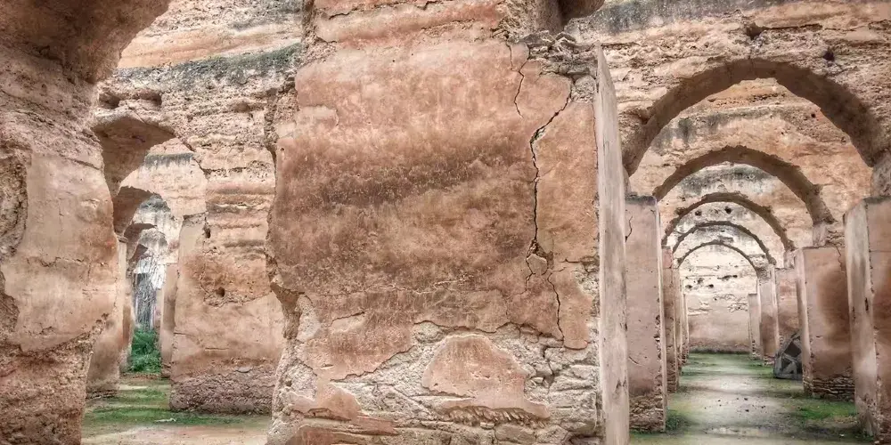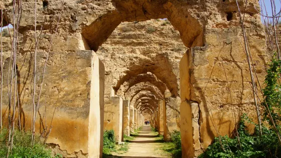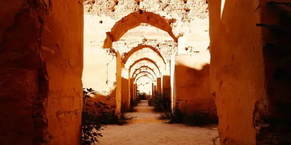 皇家馬厩是摩洛哥阿拉維王朝的開拓者伊斯梅爾在1672年繼承皇位後修建的儲存糧草和飼養戰馬的地方,馬厩的屋頂雖然在1755年的一場地震中損壞,但牆壁卻保存完好。馬厩的規模很大,一排排土牆把馬厩隔成若干個單元,有拱形的通道相通,其中蘊含著古人的智慧。馬厩雖然歷經300多年的風雨洗禮和地震威脅,但仍聳立在那裡。走在這座廢棄的皇家馬厩裡,那種震撼與壯觀很難用語言表達。如今成為世界文化遺產的皇家馬厩成了旅遊者光顧的樂園,皇家馬厩斑駁的光影也成為拍照的好地方。皇家馬厩是伊斯梅爾留給摩洛哥寶貴的財富,這座屹立了300多年的雄偉建築對研究摩洛哥的人文歷史和建築藝術都有很好的借鏡意義。