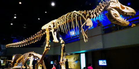 德蘭赫勒(Drumheller) 附近的皇家泰瑞爾古生物學博物館(Royal Tyrrell Museum of Paleontology) 展示了130,000 件動植物化石標本,例如北美發現的第一隻帶羽毛的恐龍、令人難以置信的霸王龍和飛龜化石。唯一致力於古生物學研究的博物館。博物館提供多種向公眾開放的項目,您可以親自體驗挖掘恐龍化石。