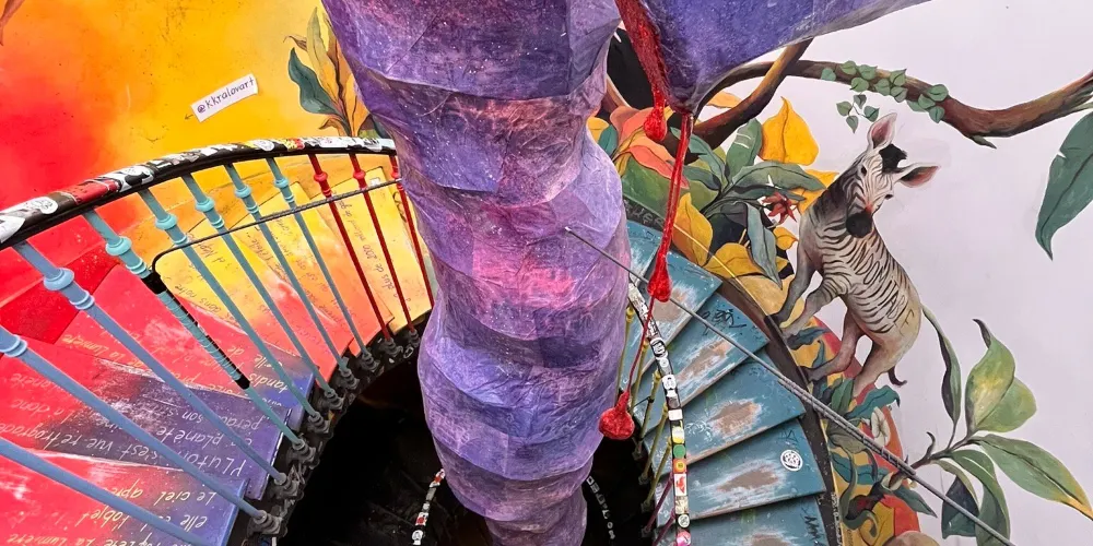 達魯樓梯是這場非凡展覽的完美場所。它是 19 世紀第二帝國時期建築師 Hector Lefuel 建造的六座宏偉樓梯之一。