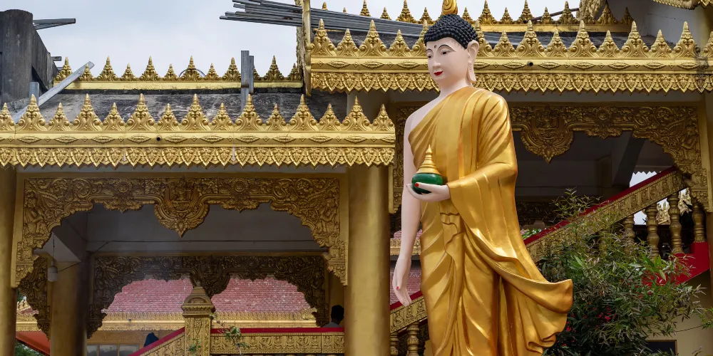 瑞麗市總佛寺位於雲南省瑞麗市,是一座具有濃厚南傳上座部佛教特色的寺廟。總佛寺以其獨特的建築風格和宗教氛圍吸引著許多遊客。寺廟建築融合了緬甸和泰國的建築元素,金碧輝煌的佛塔和精美的雕刻令人印象深刻。寺內供奉著多尊佛像,信徒常來此祈福和參拜。