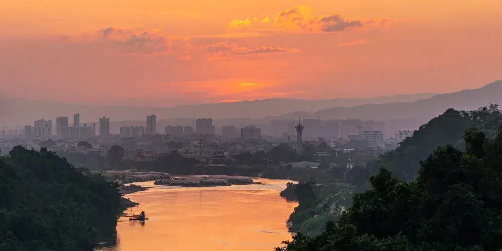 瑞麗江傣語稱為南卯江,意為“白霧籠罩的河”。元明時期稱麓川江,清代既稱龍川江,也稱瑞麗江。瑞麗江發源於騰沖縣境內高黎貢山西側的分水嶺,然後流入緬甸境內。瑞麗江屬亞熱帶長流河,兩岸壩子平坦,土地豐肥,氣候溫暖濕潤,是十分富饒的傣家魚米之鄉。瑞麗江水流平緩,清平如鏡,傣家村寨樹竹環繞,風光如畫,景色十分秀麗。