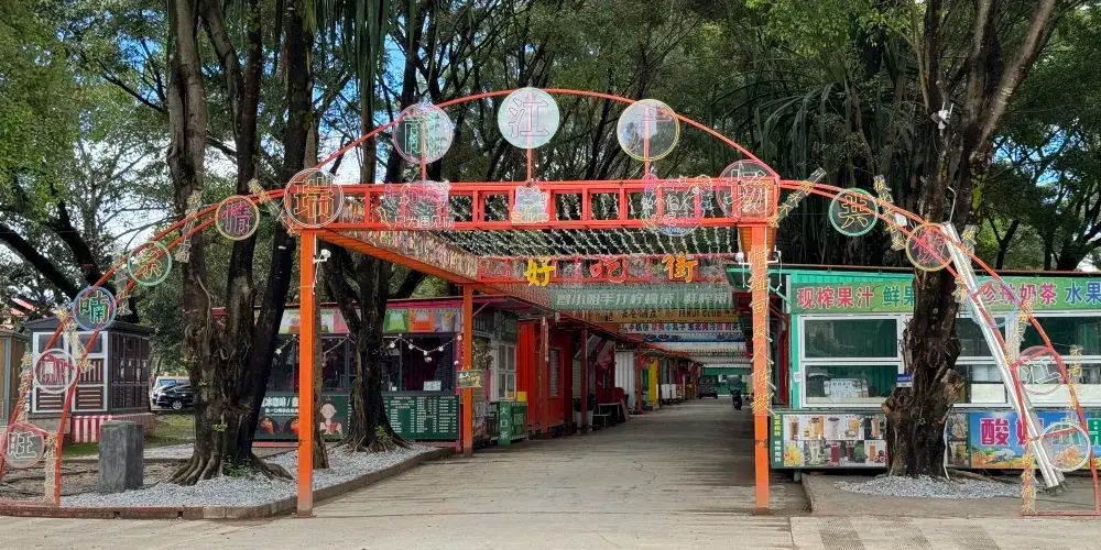 廣場很開闊,廣場的江堤旁中了很多鳳凰花,每年花開的時候特別美。