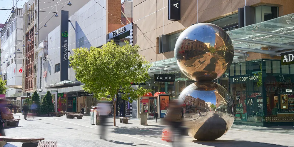 藍道購物街是阿得萊德的購物中心,它是澳大利亞一條步行街,建立於1976年。藍道購物街雖然衹有500米長,但在街上有超過600家國際和國內品牌的旗艦店和時裝店、大型百貨商場,娛樂遊樂場,以及眾多露天咖啡館和休閑酒吧。漫步在購物街上,總能看到各種時尚展覽,或是街頭藝人的有趣表演,同時購物街是一個觀看演出的有利場所,遊客也能在街上欣賞到各種藝術文化建築及大量公共文化設施,重點景點包括19世紀的建築——蜂巢之角大樓。
