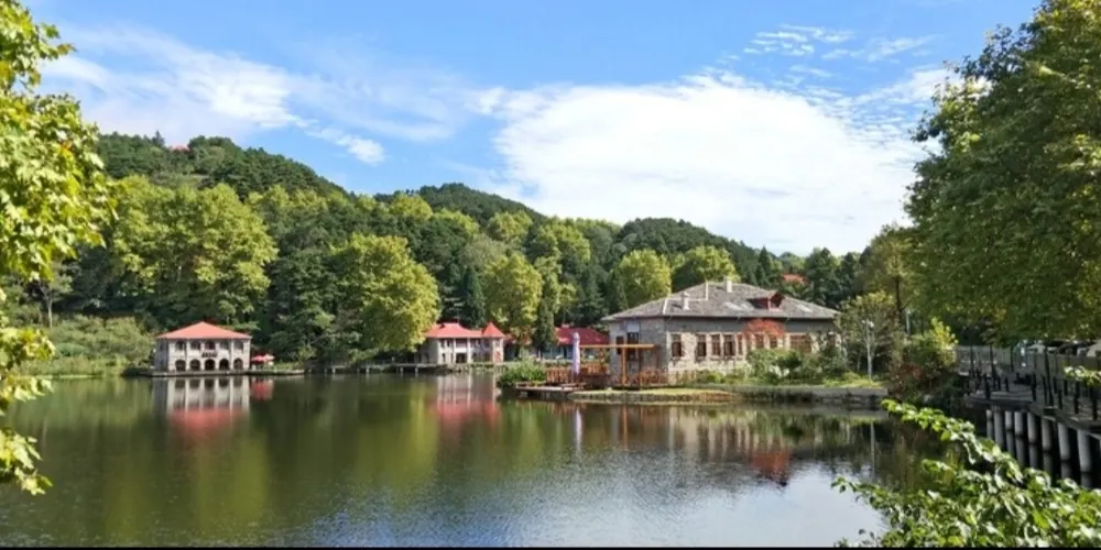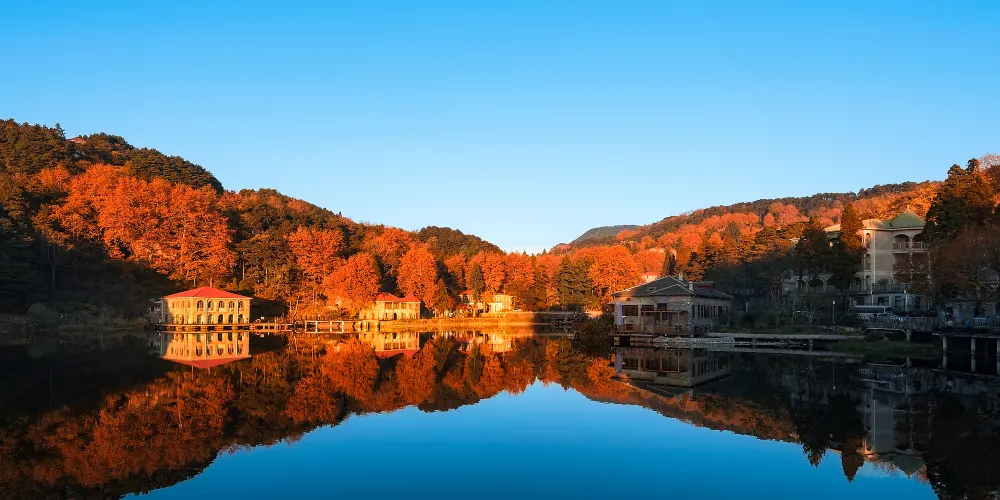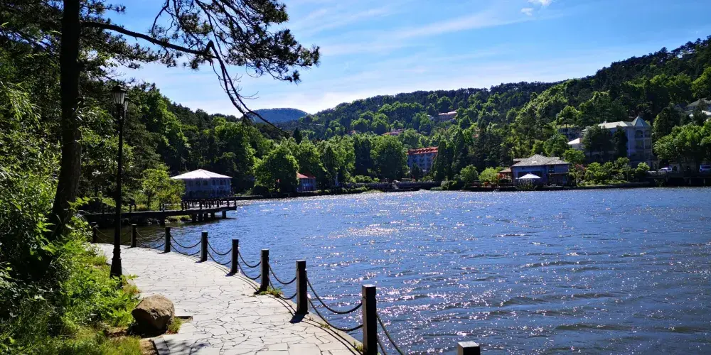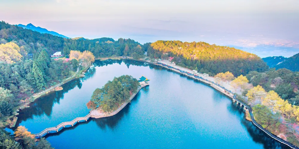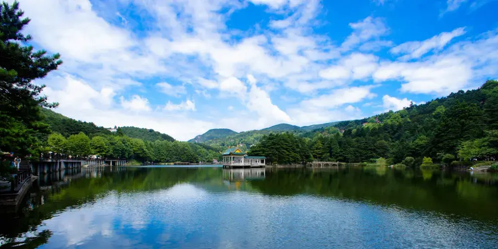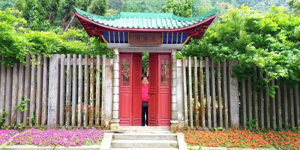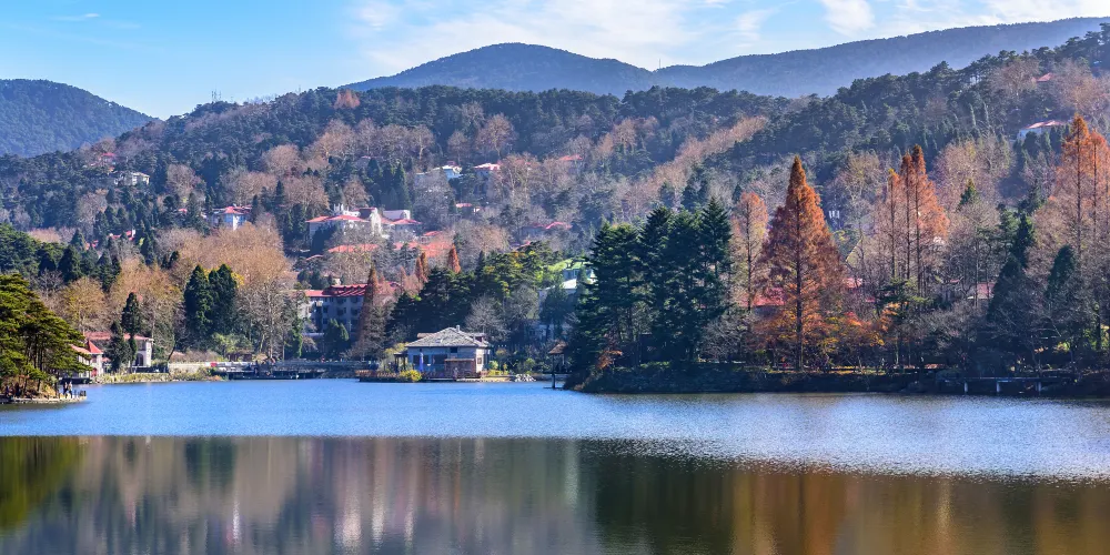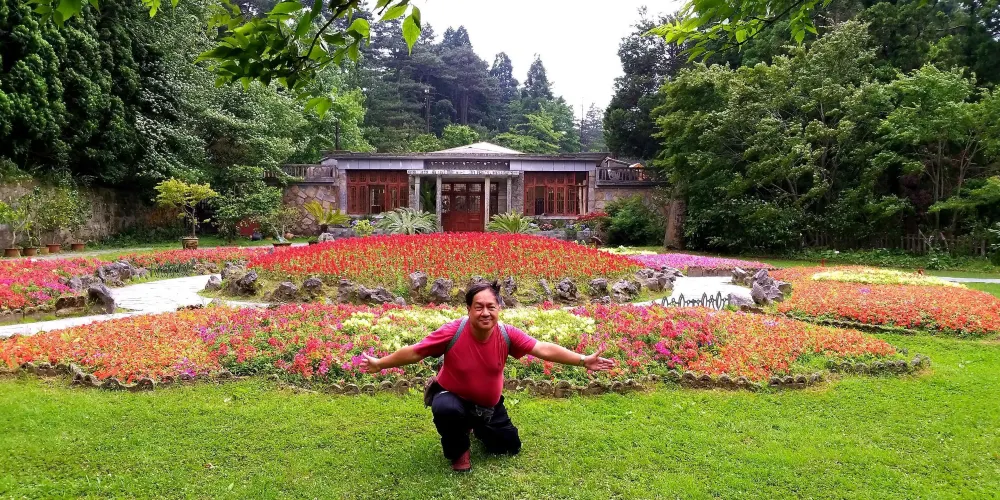 沿著大林路步行至廬山花徑,順路可見冰川遺跡-冰桌巨石,又叫飛來石。廬山花徑相傳是唐代詩人白居易詠詩《大林寺桃花》的地方。傳說,白居易被貶任江州(九江)司馬時,曾來廬山遊覽,當時正值暮春,白居易有感於山下桃花已落而此處桃花仍盛開,故人們也稱此地為“白司馬花徑”,並建造了“景白亭”。