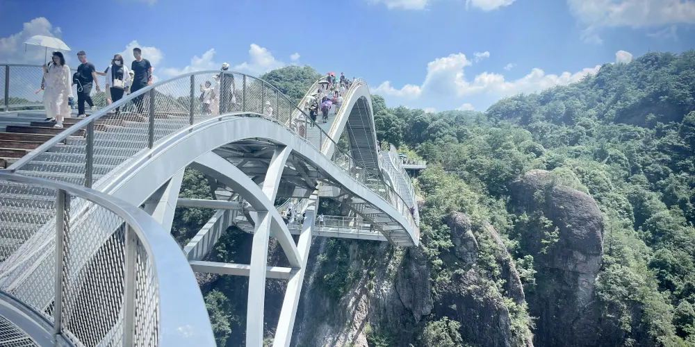 神仙居景區-如意橋不僅是觀景點,也是連接園區內各景區的重要通道。遊客可以在橋上漫步,欣賞兩岸的自然風光,尤其是在清晨或傍晚時分,雲霧繚繞,景色如畫。橋面寬敞,適合拍照留念,是攝影愛好者的理想地點。由於橋面較高,風力較大,建議攜帶輕便的外套。遊覽神仙居景區-如意橋不僅可以感受現代建築的美感,還能體驗仙居的自然魅力,是值得一去的目的地。