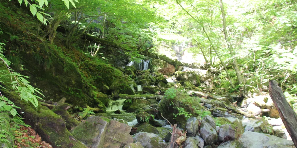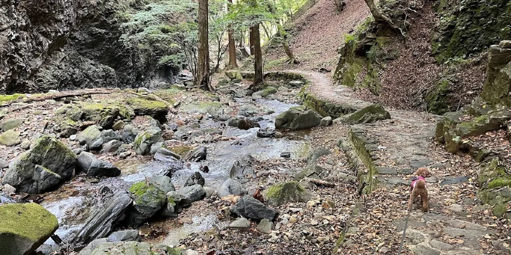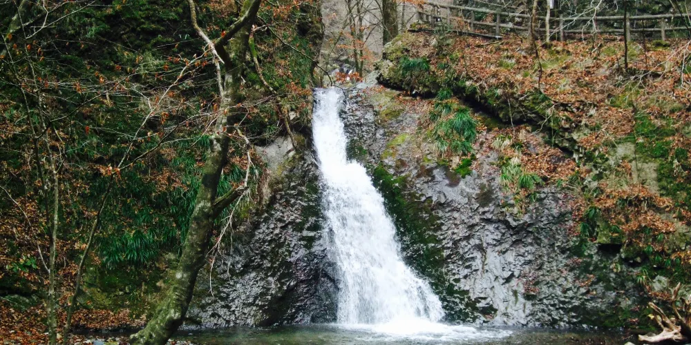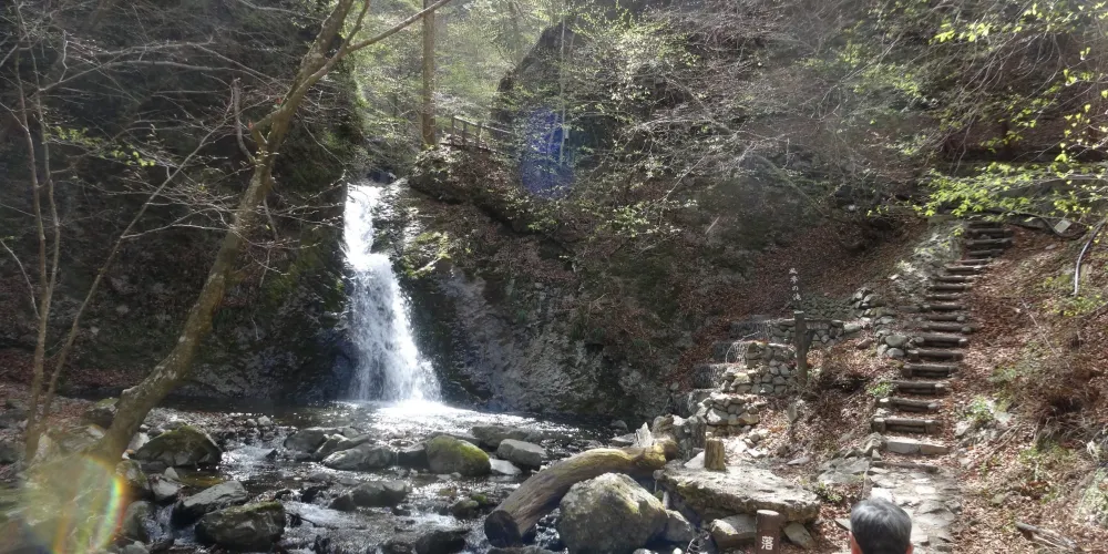 寺內的紅葉很漂亮,本殿的後面還有一條小河和瀑布,景色很美。