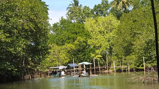 紅樹林之旅的管理辦公室位於河岸左手邊。步行穿過Mary's Beach Resort度假村,然後沿著長滿野草的小路穿過右手邊一家廢棄的旅館就能看見一個小小的竹房子,在管理處買票,然後就可以在嚮導的帶領下划船進行“紅樹林之旅”。