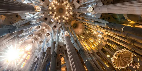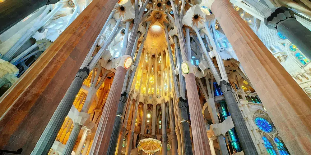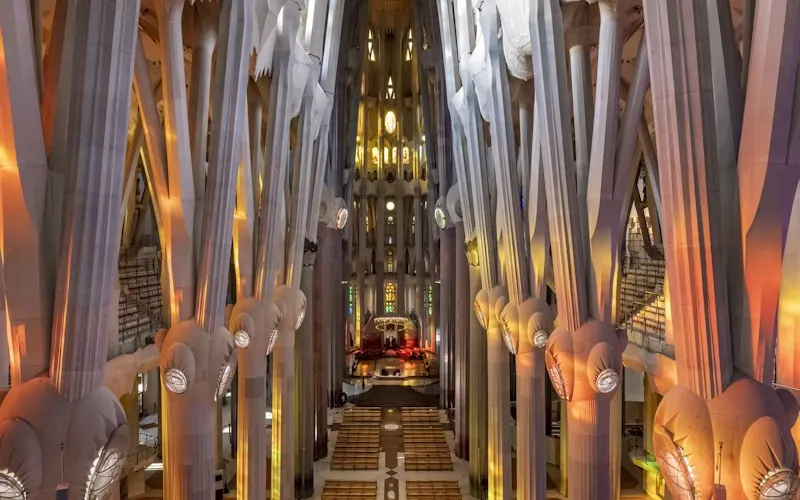 • 教堂內部充滿自然元素與旺盛生命力,登上塔樓還可一覽巴塞隆納市區的風光
