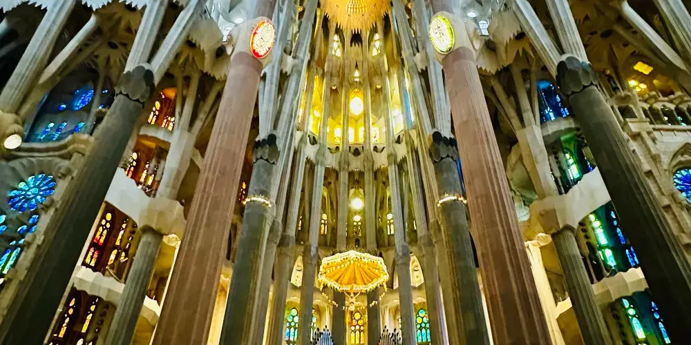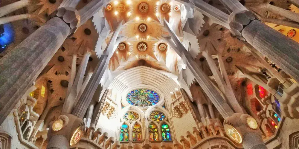 • 抬頭仰望聳立在加泰隆尼亞首都的著名地標建築尖頂,看陽光透過彩色玻璃窗映出一地彩虹,內外每一寸細節都令人驚嘆,宛如夢境