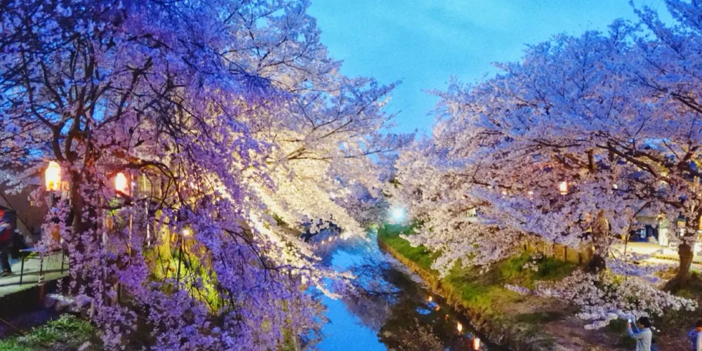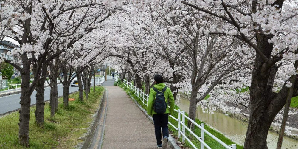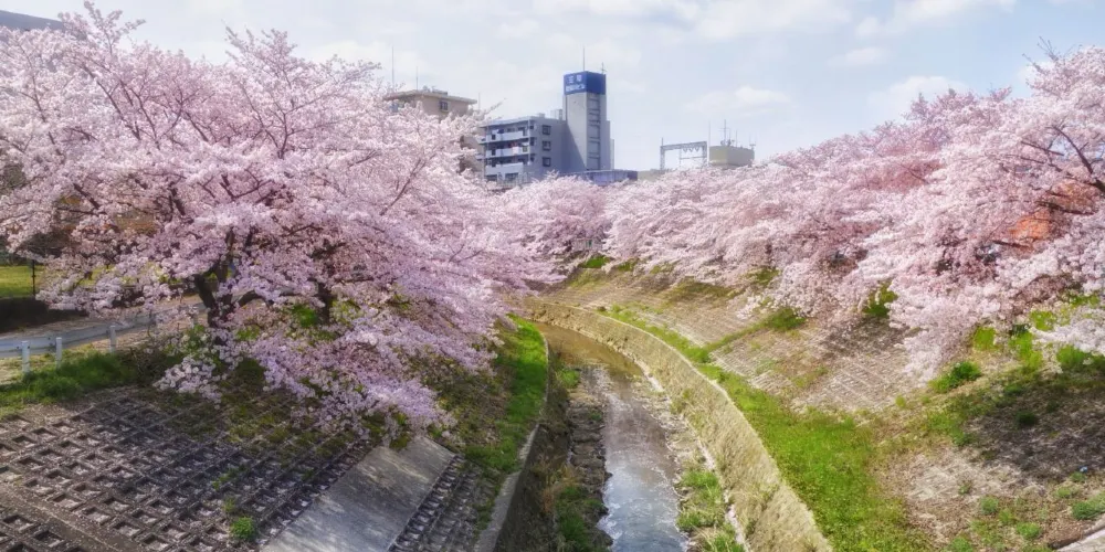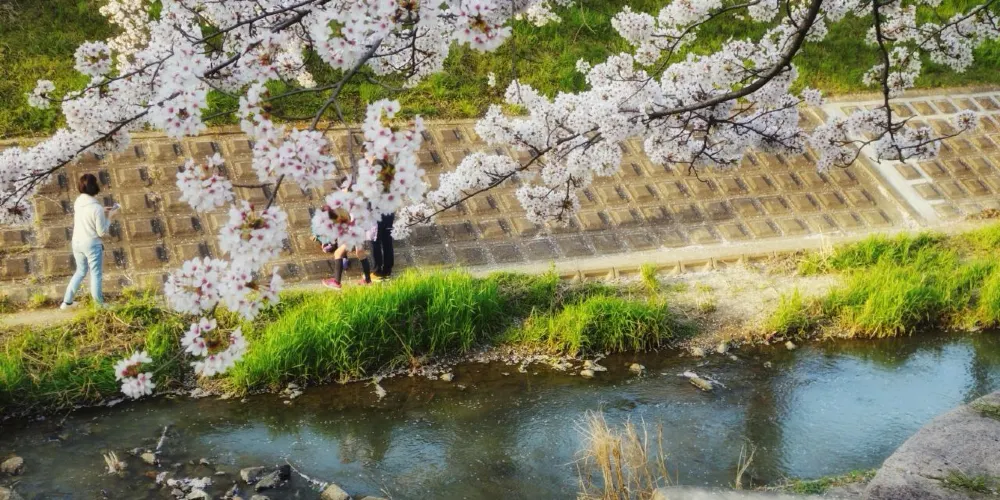 佐保川源流來自春日深山,是流淌在奈良市內的一條河川,這裡是奈良市內屈指可數的賞櫻勝地之一。從船橋商店街到大安寺沿岸種植着1000多株櫻花樹,每到櫻花季,就是白色與粉色交融的海洋。你可以由近鐵奈良線的新大宮站下車,向北沿着佐保川一路走到關西本線,前方就是無止盡的櫻花,這裏的櫻花樹齡大約為30-40年,甚至還有超過150年的櫻花樹。櫻花季期間,沿路的燈籠都會被點亮,夜晚特別迷人。白天,你可以步行或騎着腳踏車沿河岸一路騎下去,享受撲面而來的櫻花雨,感受春天來臨的氣息,夜晚來賞夜櫻,在燈光的渲染下,櫻花更顯繽紛夢幻。