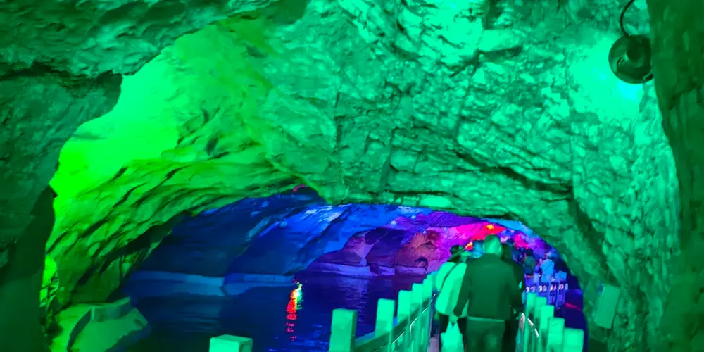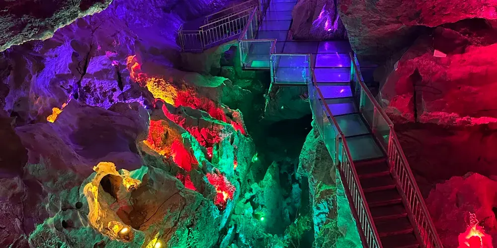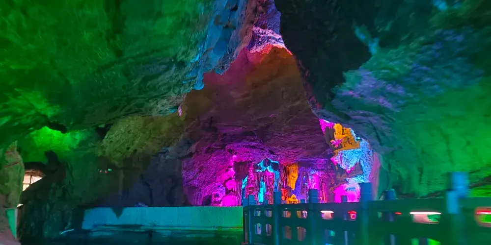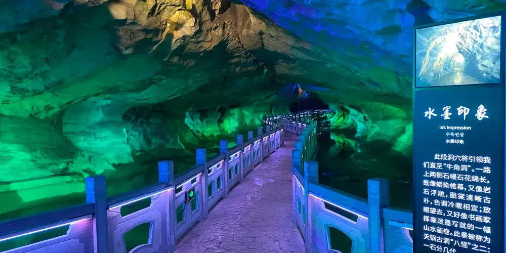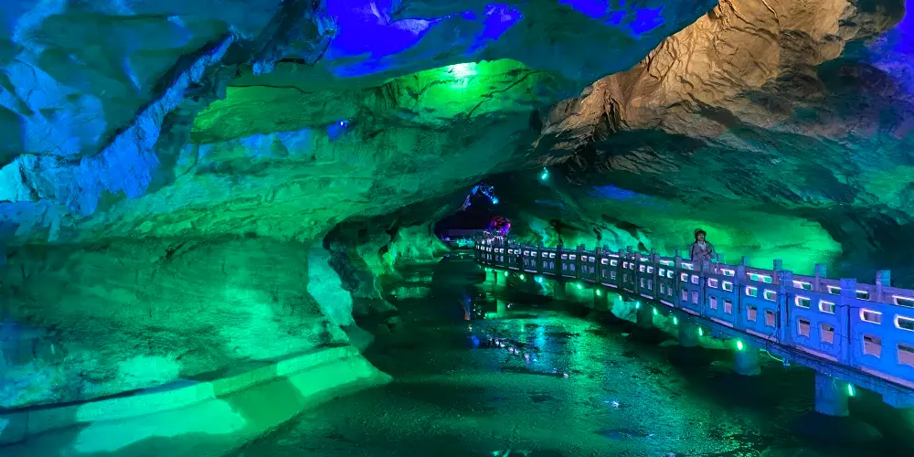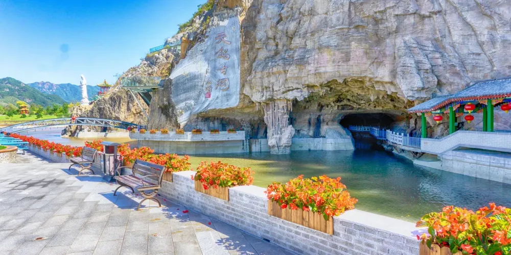 位於遼寧省鳳城市賽馬鎮温洞村,屬喀斯特地貌巖溶洞穴景觀,景區由魁偉洞穴、澄碧鏡湖、雲中玻璃棧道等奇景組成;洞穴含水洞(水月洞天世界)和旱洞(青雲紫薇仙宮)構成。景區以洞為主體,融山、水、洞、泉、湖於一體,洞中有山水雲間,魁偉的溶洞景觀、水陸相伴的洞穴奇景。洞內深邃崎嶇逶迤,現開發可乘船遊覽地下暗河千餘米。開發溶洞遊覽步道2000米,洞天世界,大自然的鬼斧神工,使鍾乳奇石變幻萬端,燈光照耀,散發出朦朧迷離的色彩,使洞內顯得神祕,富有詩意。