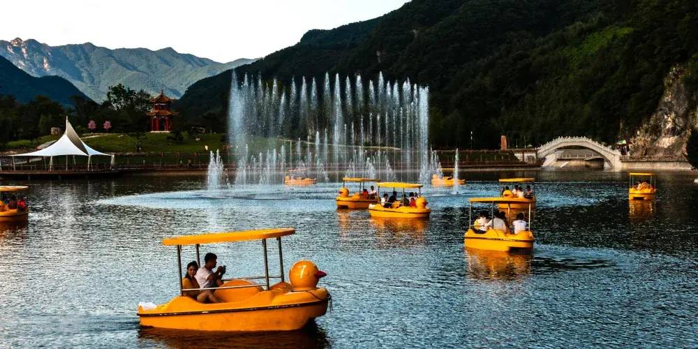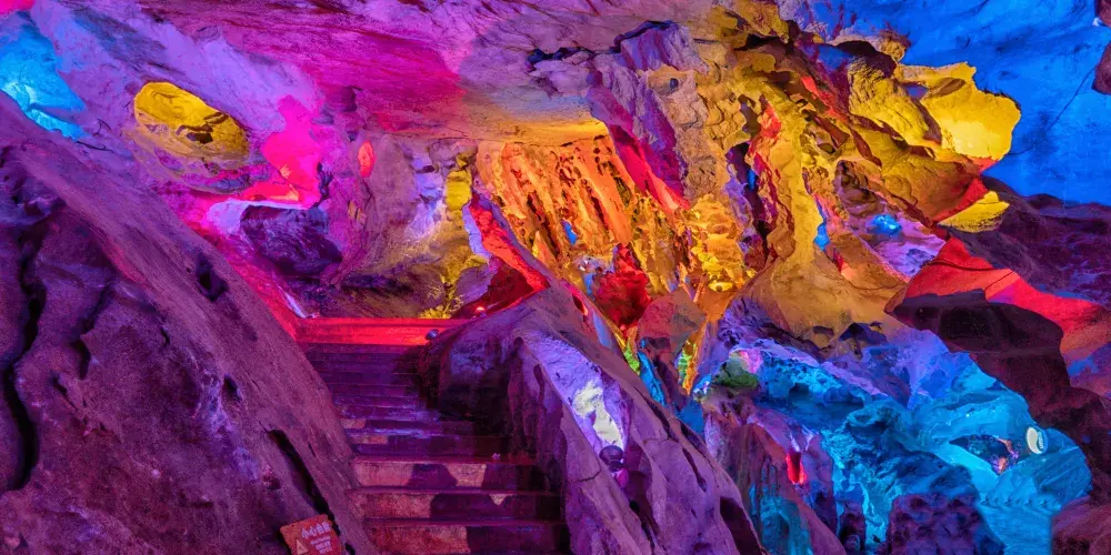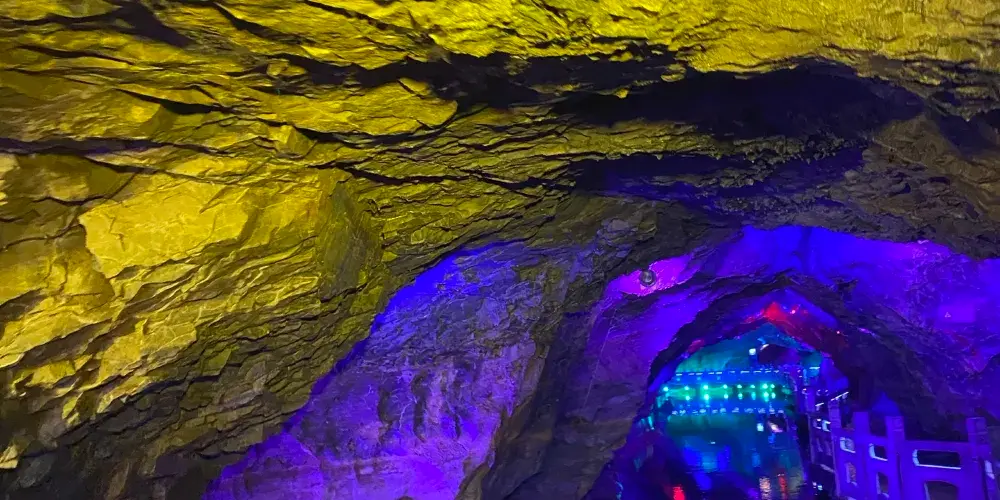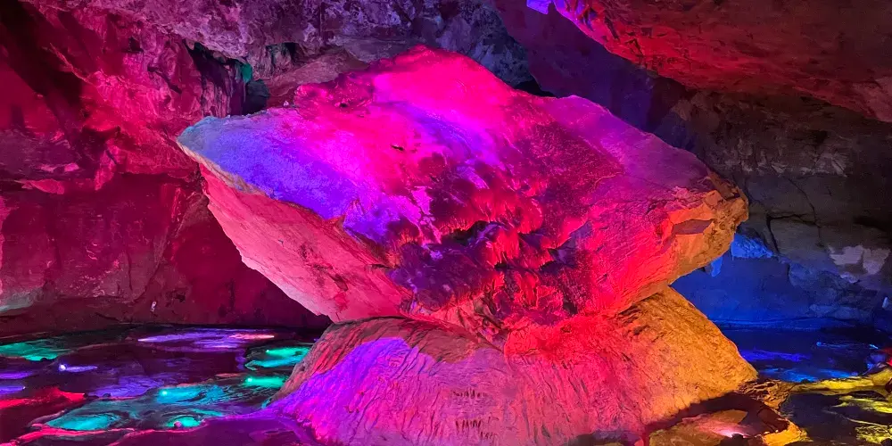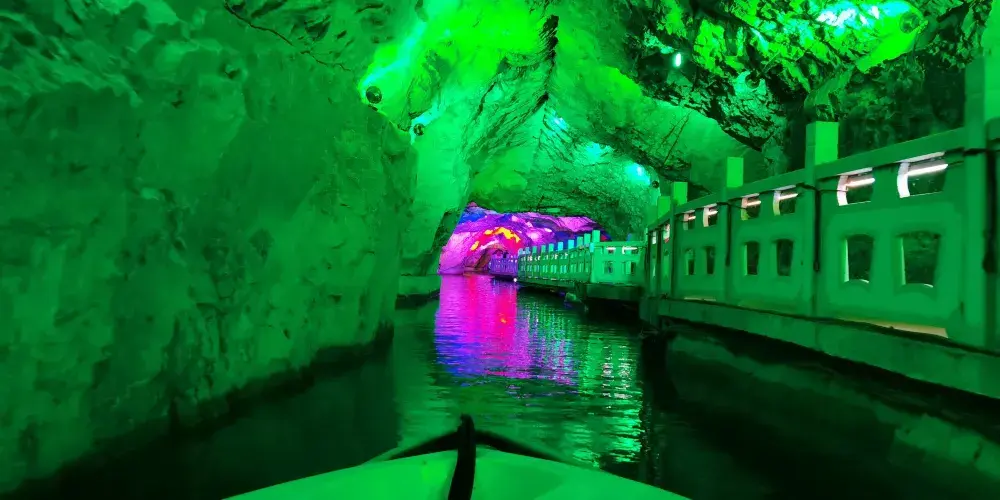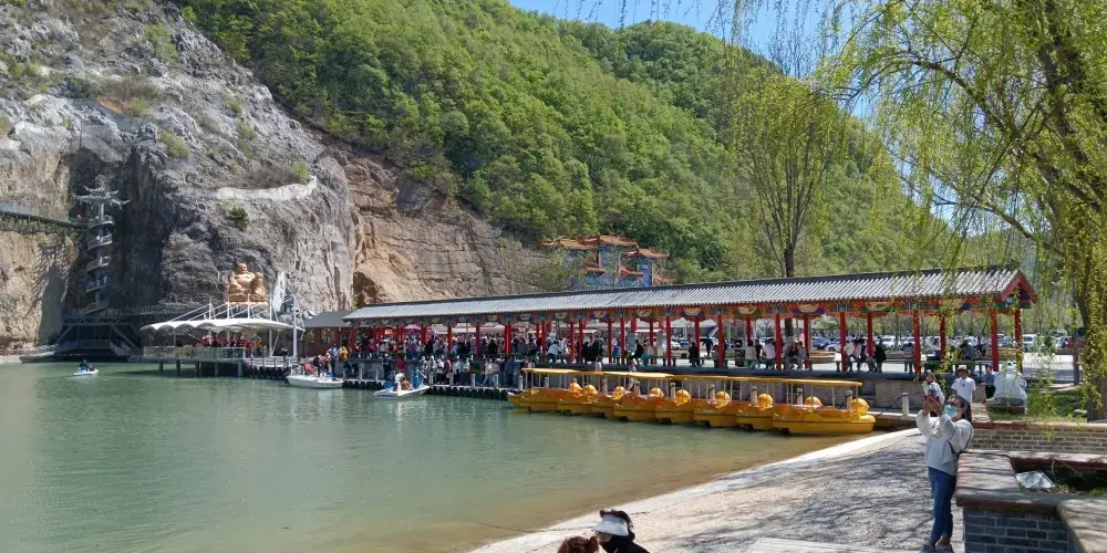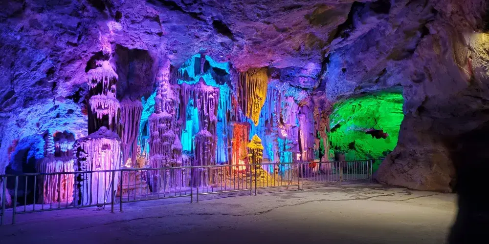 位於遼寧省鳳城市賽馬鎮温洞村,屬喀斯特地貌巖溶洞穴景觀,景區由魁偉洞穴、澄碧鏡湖、雲中玻璃棧道等奇景組成;洞穴含水洞(水月洞天世界)和旱洞(青雲紫薇仙宮)構成。景區以洞為主體,融山、水、洞、泉、湖於一體,洞中有山水雲間,魁偉的溶洞景觀、水陸相伴的洞穴奇景。洞內深邃崎嶇逶迤,現開發可乘船遊覽地下暗河千餘米。開發溶洞遊覽步道2000米,洞天世界,大自然的鬼斧神工,使鍾乳奇石變幻萬端,燈光照耀,散發出朦朧迷離的色彩,使洞內顯得神祕,富有詩意。