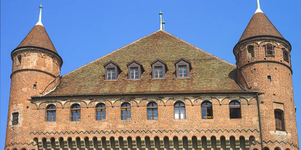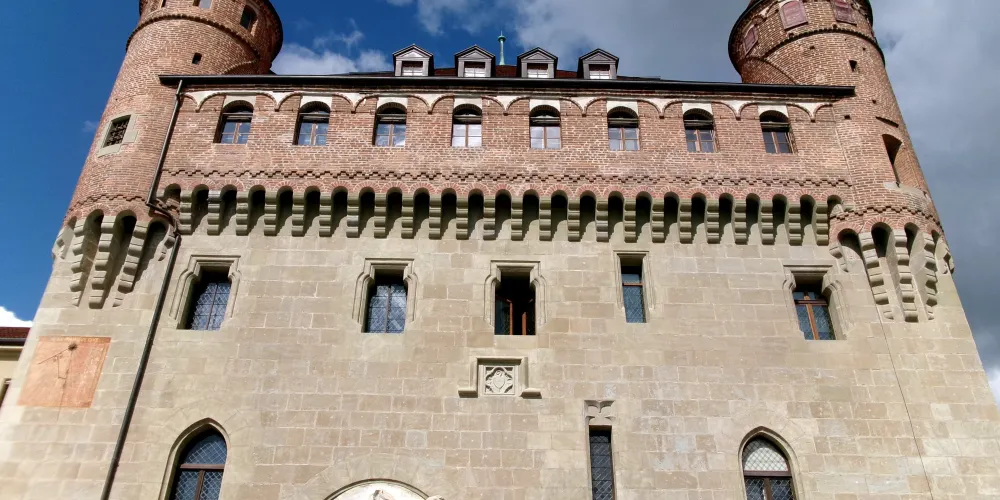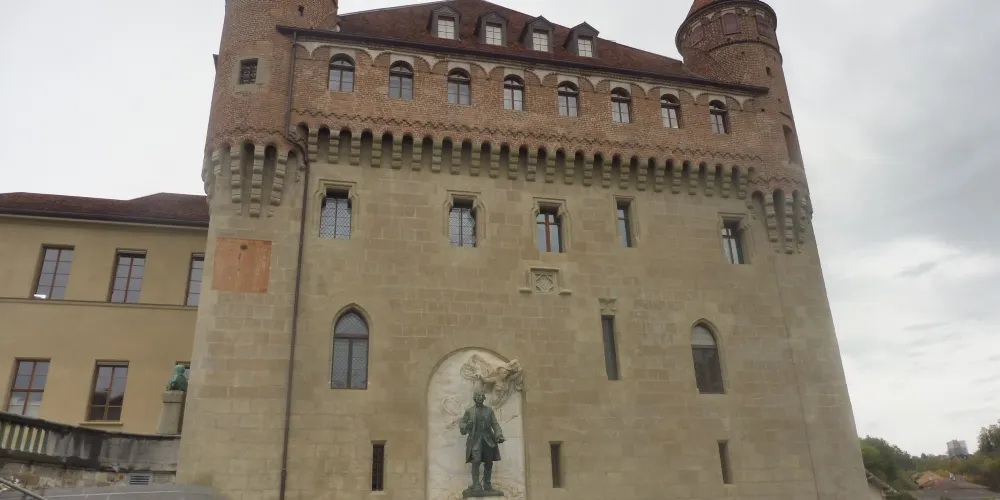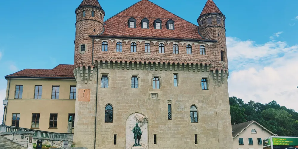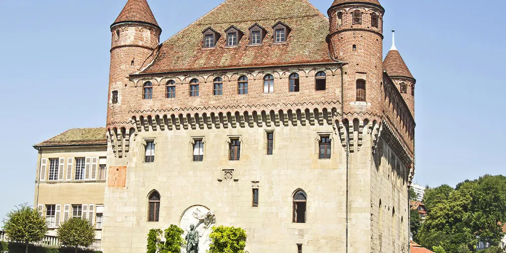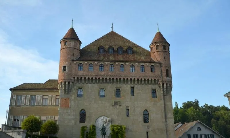 聖梅耶城堡建於14世紀末至15世紀初,當時是洛桑聖母大教堂大主教的住所,宗教改革後成為當地行政長官的官邸,如今則是沃州州議會的所在,不對外開放,遊客們衹能在外邊的廣場上欣賞其獨特的美感。城堡的下半部是厚實的石牆,上半部由典雅的紅磚砌成,散發著古樸的韻味。據説當時的大主教出生於意大利北部,便徵召故鄉的工匠來為他建造。