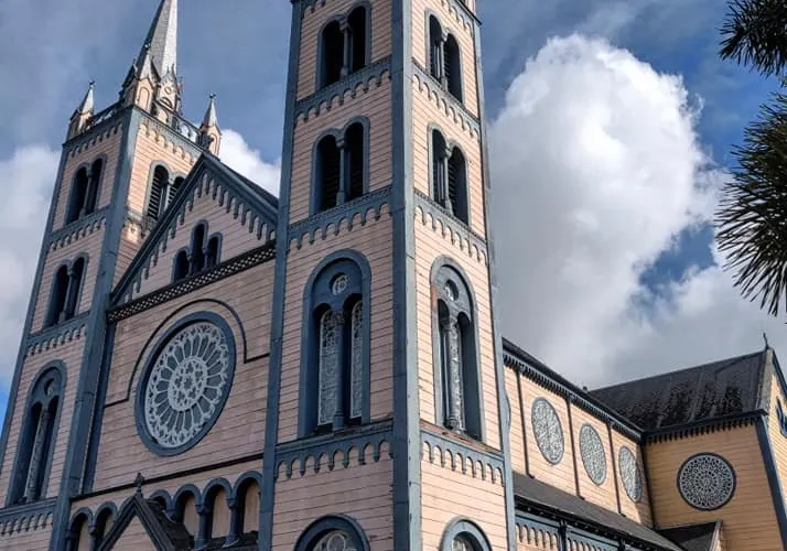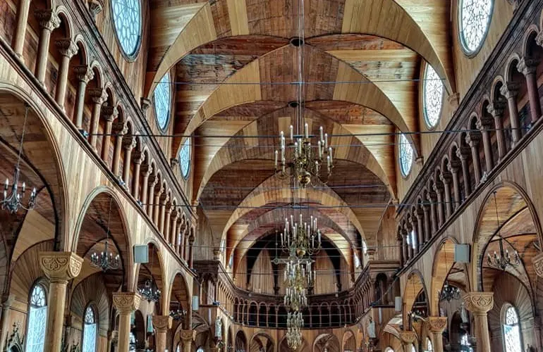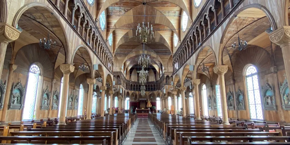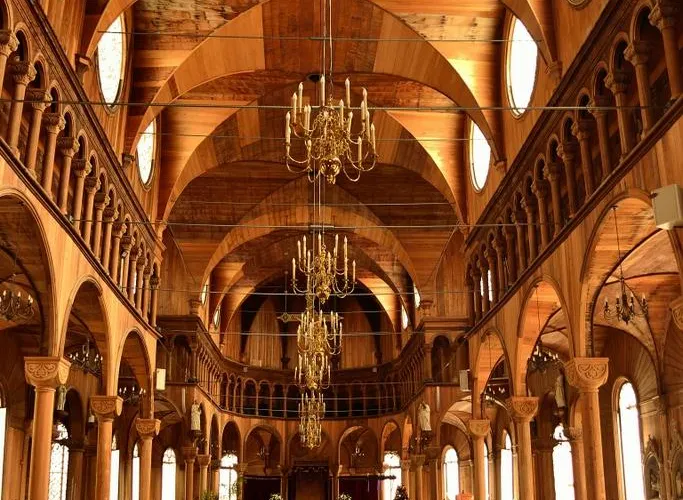 聖彼得和保羅教堂是一座引人注目的木質天主教堂,位於蘇利南首都帕拉馬裡博。教堂以其獨特的建築風格和歷史價值吸引遊客。這座教堂建於19世紀末,是世界上較大的木造教堂之一,其精美的哥德復興風格和細緻的木雕工藝令人印象深刻。教堂的內部裝飾同樣引人注目,精美的祭壇為其增添了神聖的氛圍。