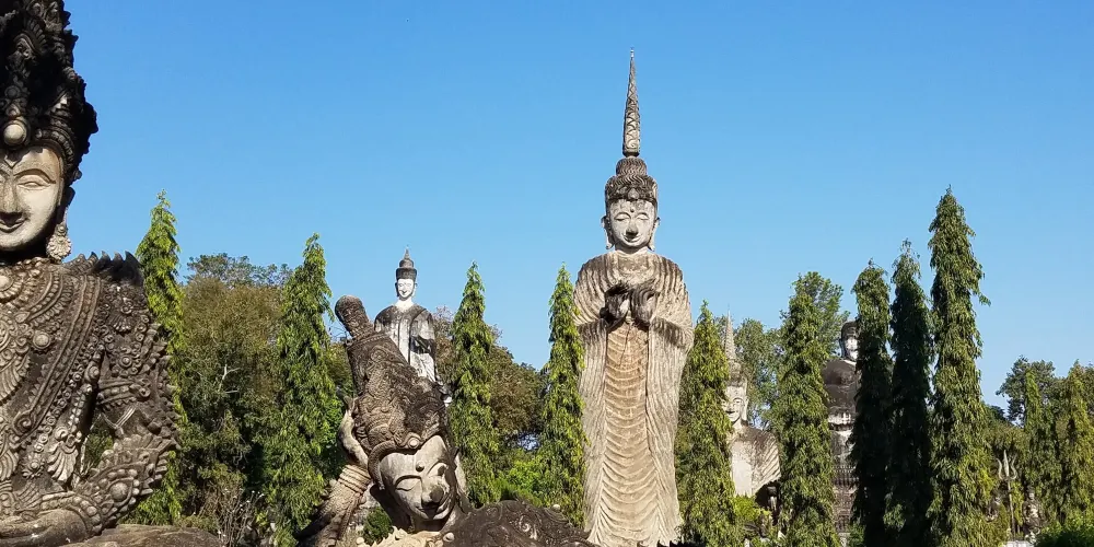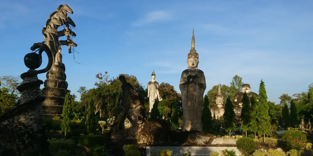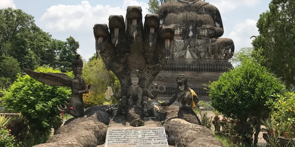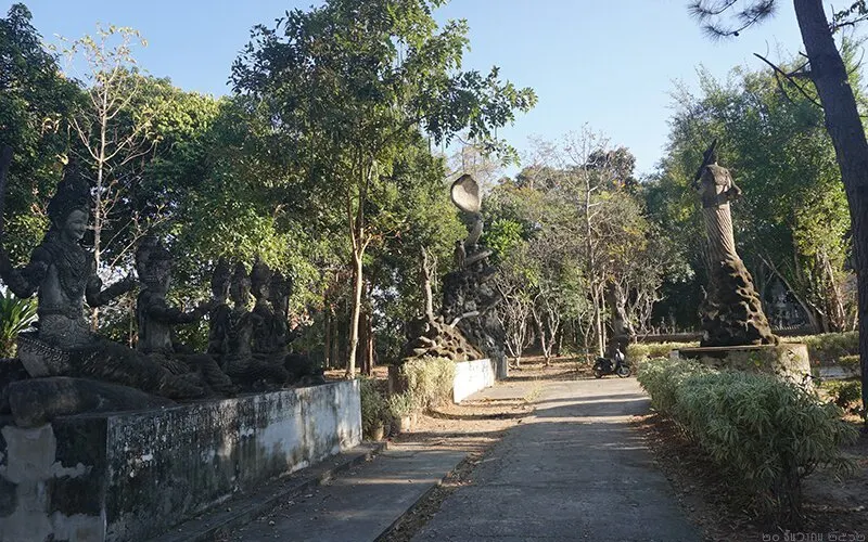 廊開的雕塑公園,像你展示了印度教以及佛教的佛像藝術,其中有很多的薩滿雕像,這些雕像,帶你進入一個神秘的世界。 如果你坐火車去寮國,那麼廊開這個地方就是你的必經之地,這裡的食物很便宜,但是這裡交通比較貴,比如街上tutu車價格比較高,最好多人分攤。 這裡距離寮國邊境大約半小時路程,在鄉間小路行進時,你會看到這個雕塑園和周邊的農田。