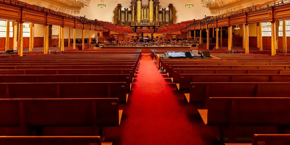 鹽湖城大禮拜堂的唱詩台上有一架很大的管風琴,由大小不一的一萬一千支管子組成。演奏時間是星期一到星期五的中午十二時,週末和星期日的下午四時。有名的唱詩班泰伯納克爾合唱團彩排時間為星期四晚上八時,正式播放的時間為星期日的上午九時三十分。每年聖誕夜在這裡演奏的聖樂,由廣播電台播到世界的每個角落。
