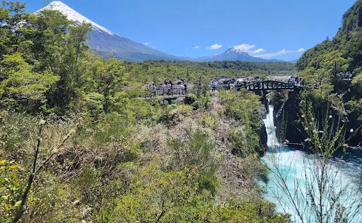 Saltos del Petrohue是一個壯觀的自然景點。這個景點以其湍急的瀑布和清澈的綠松石色水流而聞名,是智利很受歡迎的自然旅遊目的地之一。 Saltos del Petrohue由Petrohué河的水流經過火山岩形成的峽谷和岩石時,形成了一系列壯觀的瀑布。河水的顏色因其源自安第斯山脈的冰川融水而呈現出獨特的綠松石色,與周圍的黑色火山岩形成鮮明對比。這種獨特的自然景觀吸引了無數攝影師和自然愛好者前來捕捉其美麗。遊客可以透過設立在瀑布周圍的步道和觀景台近距離欣賞這些瀑布。步道設計良好,適合各種年齡和體能水平的遊客,同時也為遊客提供了多個觀景點,可以從不同角度欣賞瀑布的壯麗景色。