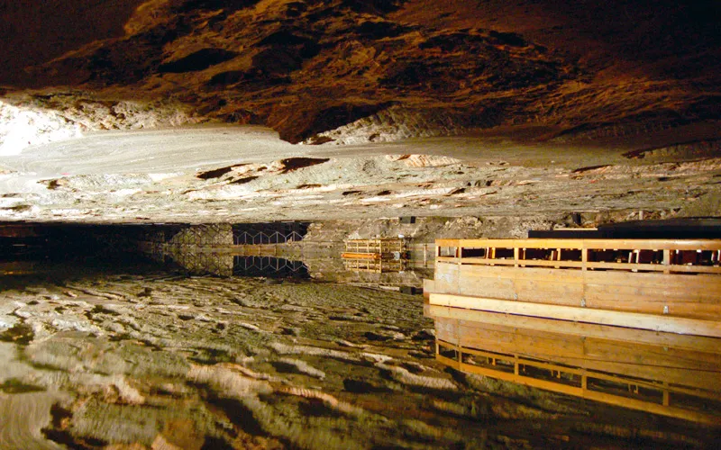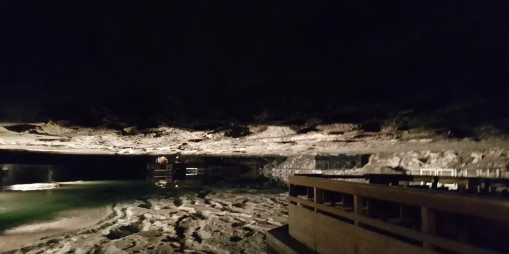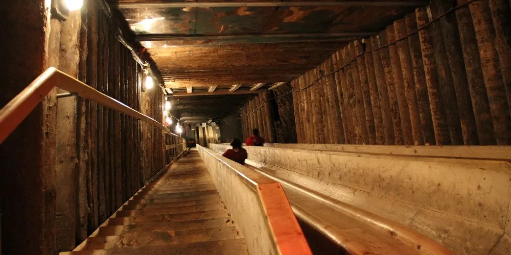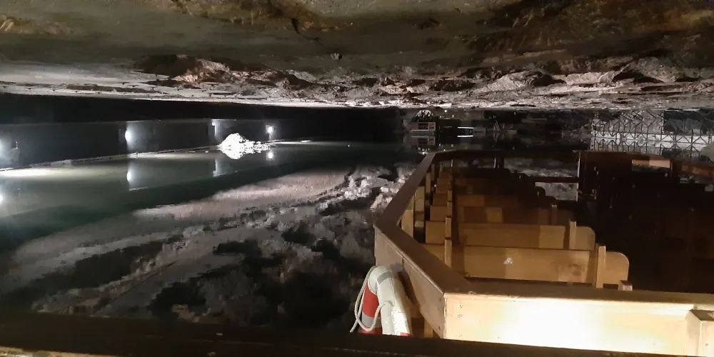 參觀鹽礦需要約1.5小時,首先要裝著遊覽服,再搭乘滑車下行至34米深處隧道長約600米,除了參觀、觀賞說明影片外,還可以乘坐遊覽船渡過地底湖。