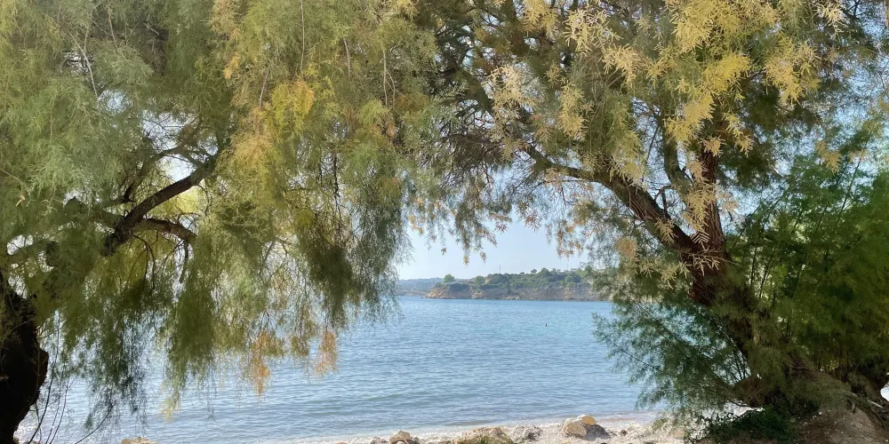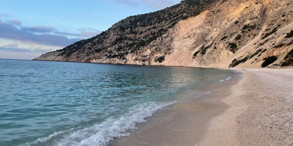 這裡是伊奧尼亞羣島一處美麗的海灘,海灘面積開闊,有可供餐飲的休息區和自由玩耍的放鬆區。在沙灘上有一塊較為別緻的小鵝卵石區,滿地遍佈白色的鵝卵石,和別處鬆軟的沙子形成對比,顯得極為特別又具有樂趣。海灘上還有水上腳踏車等遊玩項目,是您休閑聚會的好去處。