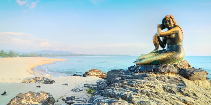 這是一片寧靜美麗且乾淨的海灘。據説,沙灘附近的海域,一度曾是海盜據點,但如今已成為宋卡的風景區。在潔白的沙灘上,還有一座很顯眼的青銅製美人魚雕像,以表達對印度教中大地女神的敬意。另外一個有關這尊雕塑的傳説是:這是一名善良的宋卡姑娘,在沙灘上邂逅了一名水手,兩人墜入愛河。當姑娘懷了水手的孩子時,水手卻再度啟航。天真的姑娘深信水手很快就會回來迎娶她,天天都到沙灘等待。年復一年,日復一日,水手始終沒有回來。終於有一天,姑娘化成美人魚銅像,永遠守望着撒米拉海灘。美人魚銅像旁邊是一組“貓和老鼠”雕像,因為宋卡的兩座島嶼就分別命名為貓島(KoYo)和鼠島(KoLosin)。